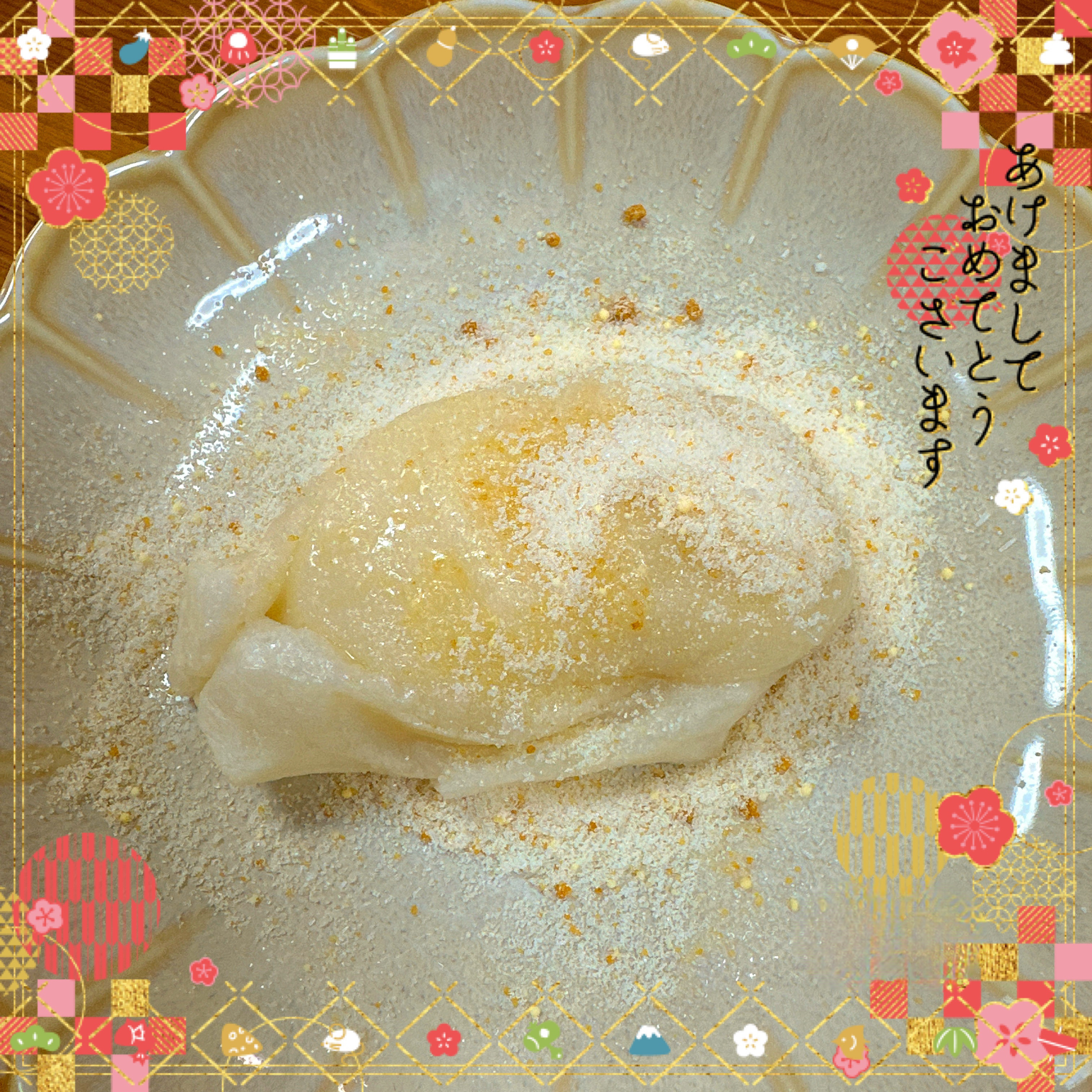 手作りハッピーターンの粉に、余ったお餅をかけて食べました。旨し😆