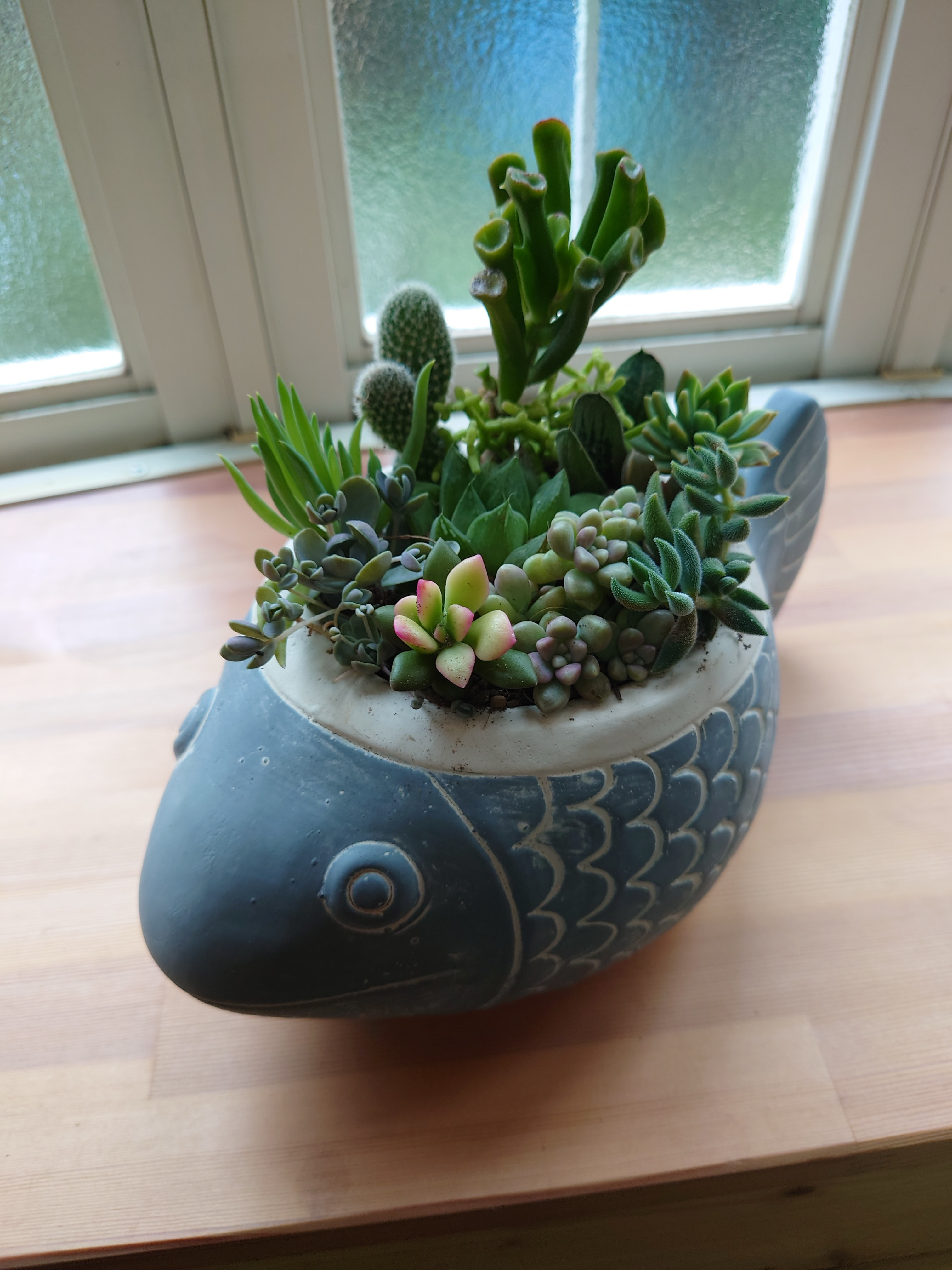 よく行くお店で一目惚れした魚の形をした鉢、これに多肉をアレンジしたらきっといい感じになると思い出来上がりました。