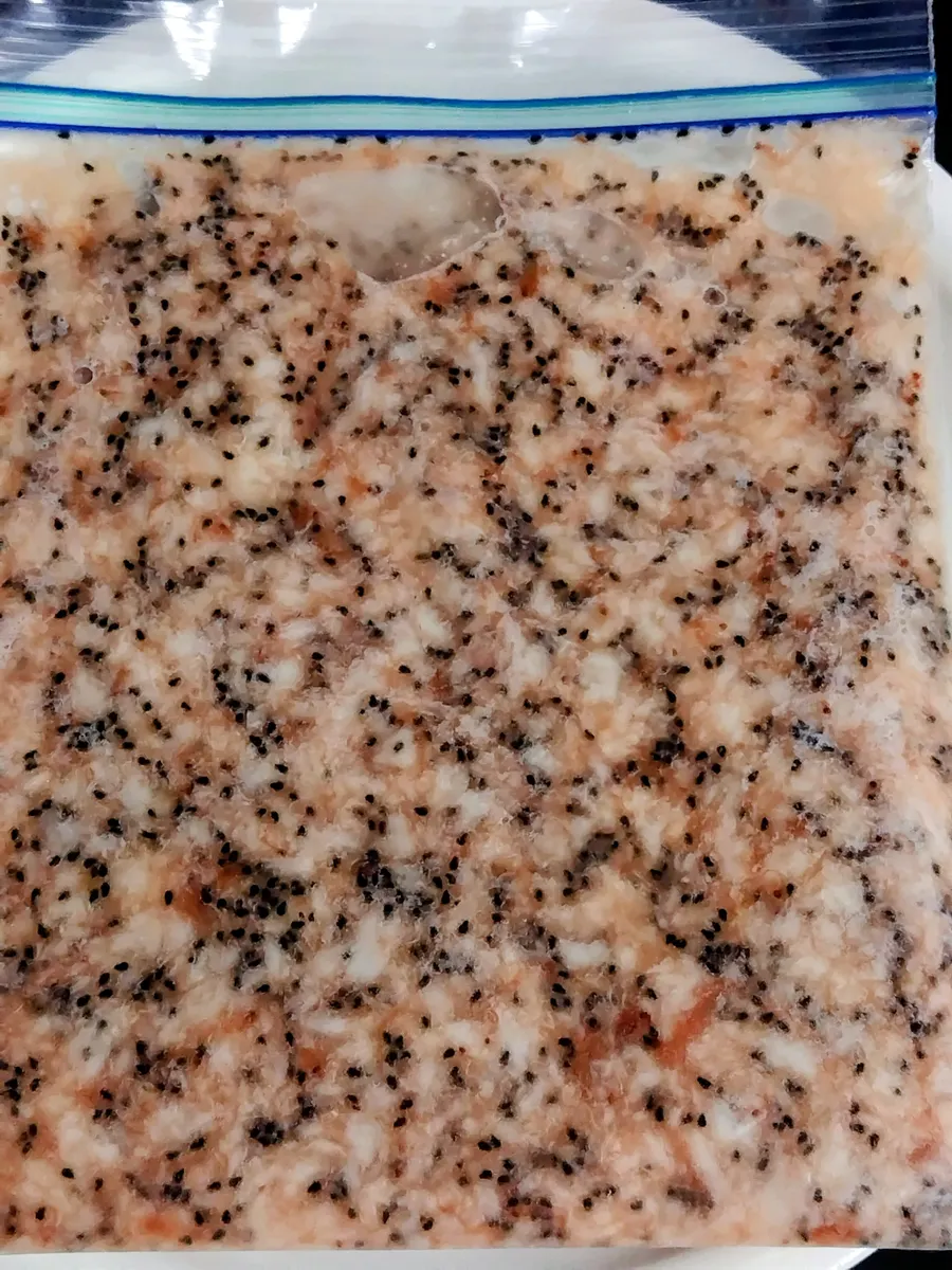 調べてみると、ジャムと一緒に潰して冷凍にするという食べ方があったので、残り半分はストロベリージャムと一緒に混ぜて潰して凍らせました。