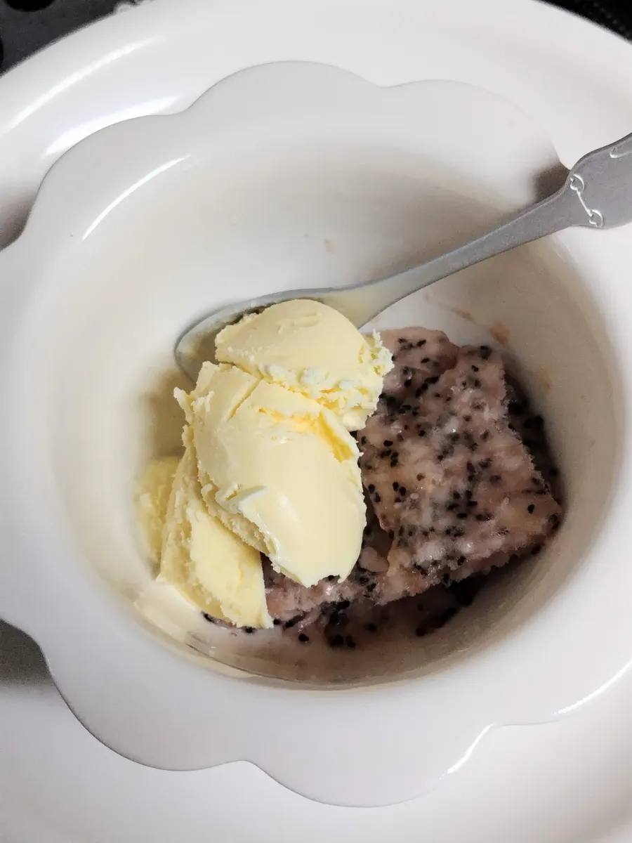 食べるのはかなり久しぶりで、あまり味がないという記憶があったのですが、今回もやっぱり味が薄く物足りなかったので、半分はハチミツをかけて食べてみました。