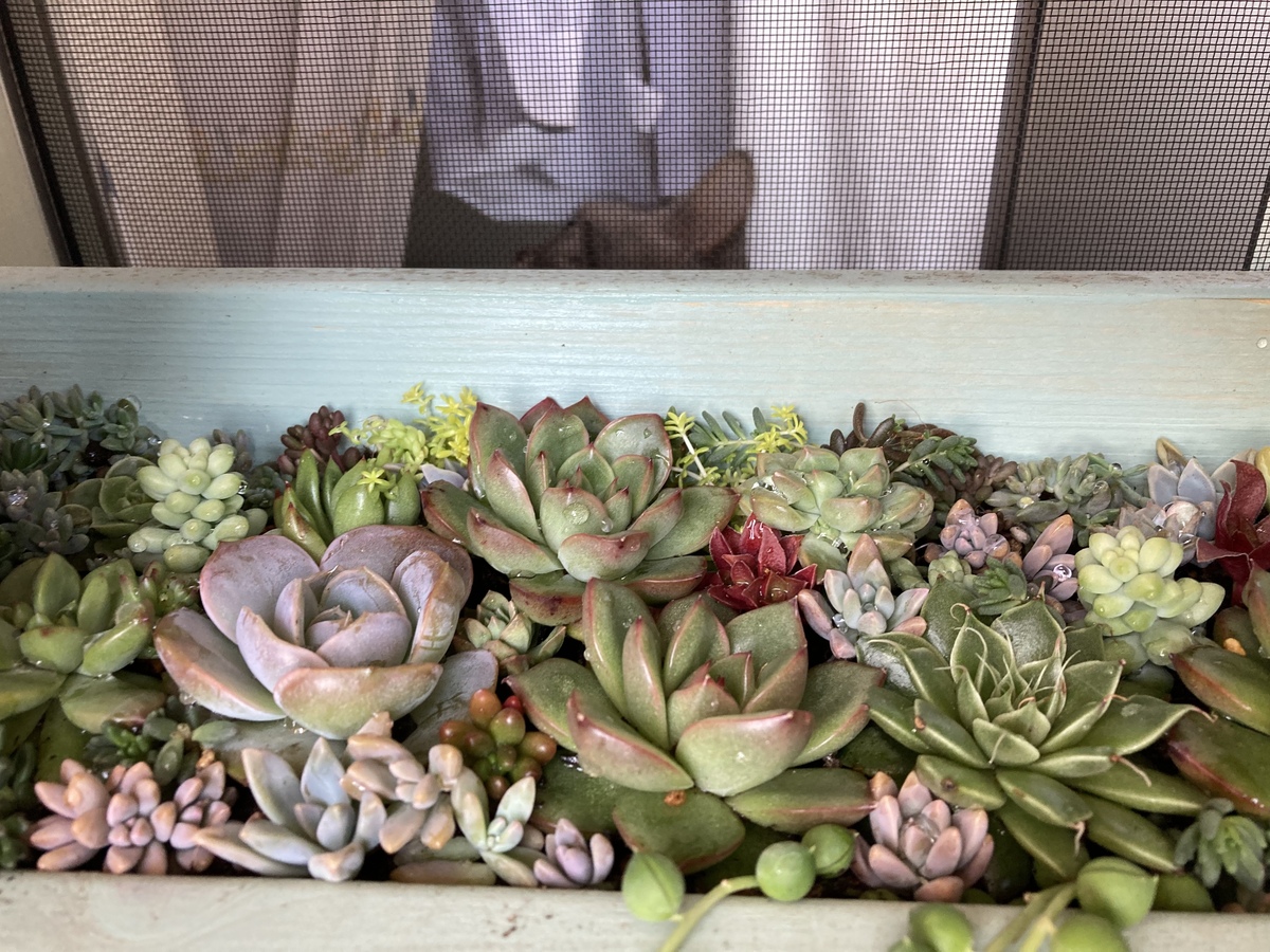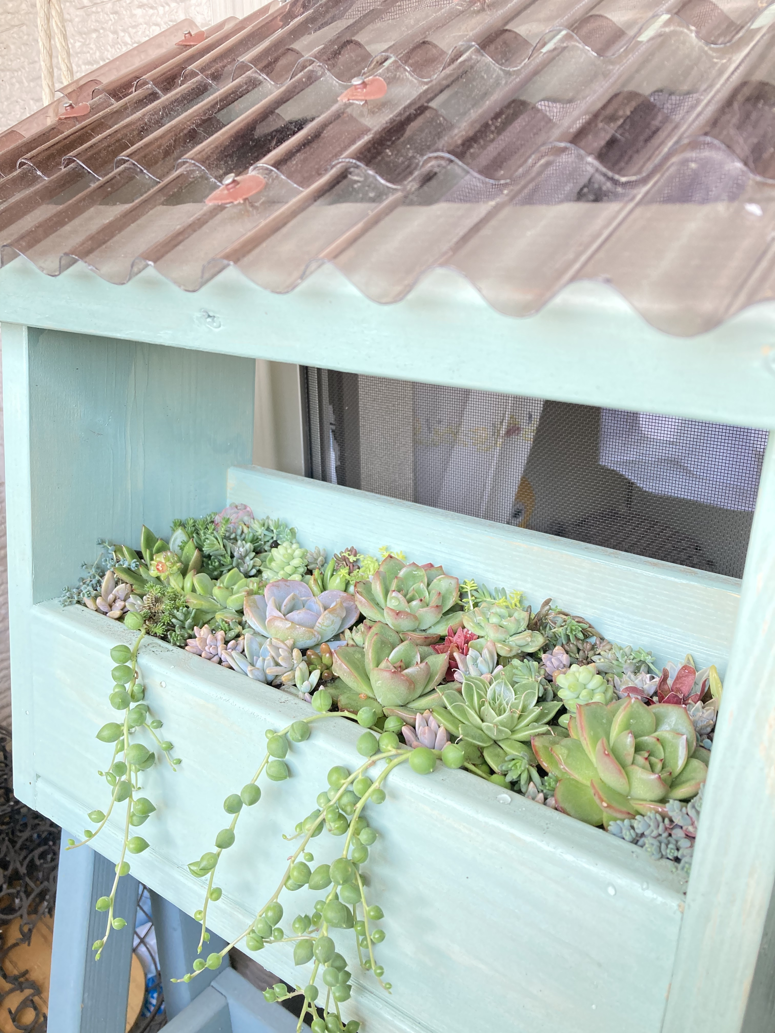 波板付きプランターにいっぱいの多肉達🤩可愛いですね🥰