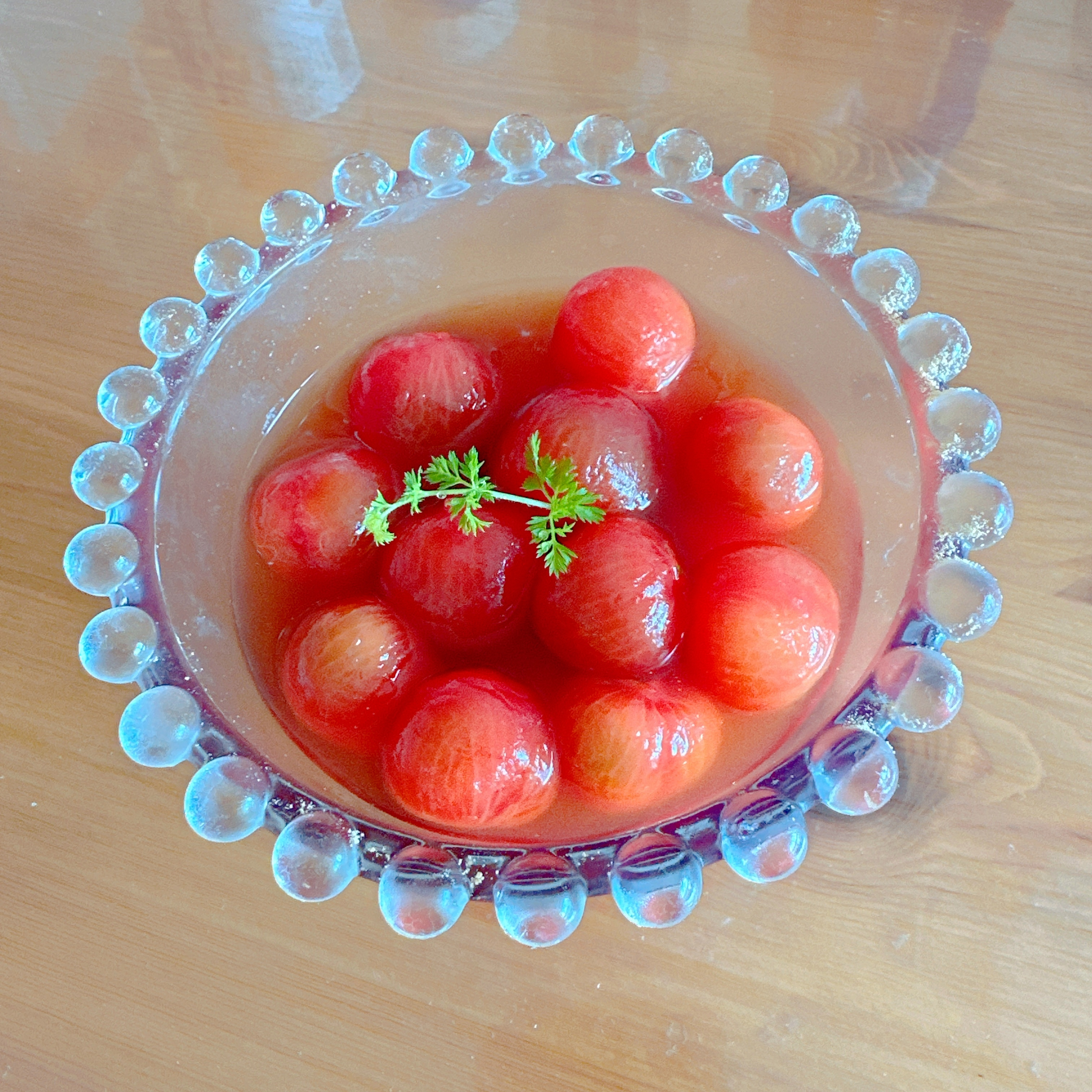 投稿を表示ガラスの器に赤い🍅綺麗で、美味しそうですね🤩