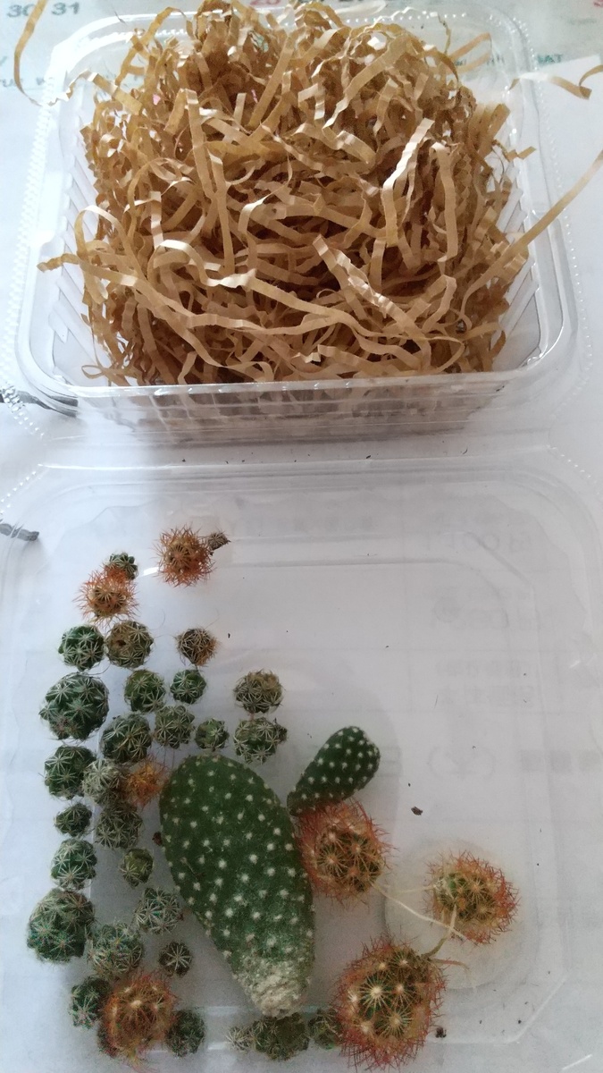 トップ > グリーン > 🌵子株の育成ハウスを作りました😆 みずたま☆ 2024/05/20 21:01 🌵子株の育成ハウスを作りました😆 大きいので1センチほどの赤ちゃん🌵 発根促進食品パックで見守っていました😊 白い根✨見えるかな❓️😆時々少しラッピング紙が湿気る程度のお水やりをしていたら根が出てました〰️😆👍 この子達に合う鉢🤔 ワンルームマンション😁プラグトレーを✂️切って個室🤭 倒れるのでヨーグルトのカップへ入れて少しお水あげました😁 フードパックにラッピング用の紙を敷いてます残りの赤ちゃんはまた発根促進パックで見守ります🎶 いいね 共有する 共有する X LINE リンクをコピー コメントする 1 件の返信 (新着順) ミュートしたユーザーの投稿です。 投稿を表示 じゅんちゃん 2024/05/20 21:13 赤ちゃんたち♥可愛らしいですね😀 いいね 返信する ミュートしたユーザーの投稿です。 投稿を表示 みずたま☆ 2024/05/21 00:39 じゅんちゃん 小さいのにトゲはしっかりあって😳根が出てたら土に置いてもこれからお水が吸えます🎶 数ミリの赤ちゃんはお母さんから離すのが早かったですね〰️😅 未熟児ちゃん達はもう少し保育器代わりの食品ブラスチック容器で見守ります😊 いいね 返信する