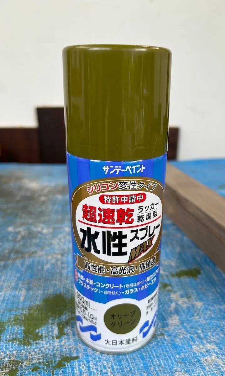 以前松原のクソでっかいホムセンに行った時に使うあては全く無いのに衝動買いしたオリーブグリーンのスプレー