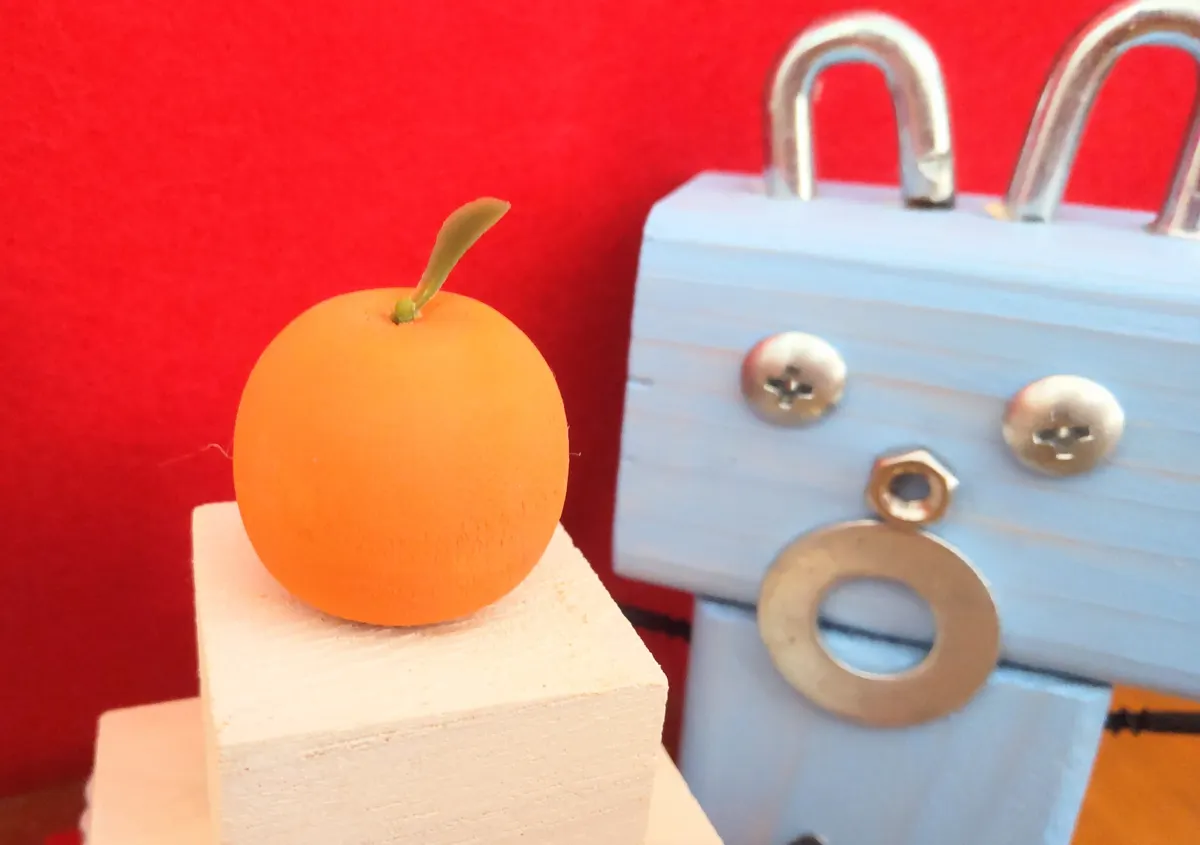 鏡餅のみかんは、100均のウッドアロマサクランボオブジェを利用しました。ヘタにフェイクグリーンを刺しました。餅の部分は…丸く作れないので四角で作りました。レースを巻いて、赤いフェルトを敷きました。