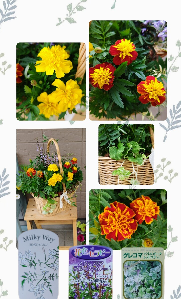 マリーゴールドは3種類、それぞれ違う色を選びました。どれも可愛いです❣️
