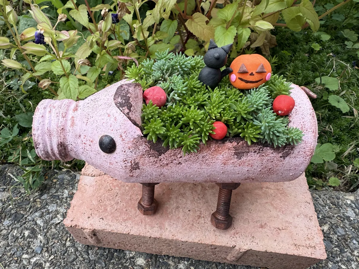 トップ > DIY > ハンドメイド > リメブタ缶 めるマル 2025/10/23 15:34 リメブタ缶 ゆきち ゆきちさん‼️おかげさまで できました〜✨ ゆきちさんのようなブリキ風に憧れてたのに なぜかピンクにしてしまった…なぜ…? 仕方なくサビを追加しました😅 ↑ そして皆さんのような多肉寄せのセンスが ないのでその辺に勝手に生えてるセダムを乗せました ↑ もうすぐハロウィンなので娘が樹脂粘土で作ったかぼちゃを置いて 庭に鎮座しております😊 ゆきちさんに色々ご丁寧にアドバイスをいただき ようやく出来上がりました♪ ありがとうございました😊 今度はブリキ風のブタにしたい♡ 何色で塗ればいいのかしら…😅 いいね 共有する 共有する X LINE リンクをコピー コメントする 1 件の返信 (新着順) ミュートしたユーザーの投稿です。 投稿を表示 ゆきち 2025/10/23 18:13 キャー😍カワイイ〜💕ピンクのブタさん、めっちゃいいじゃないですか‼️あんな文だけのざっくりした説明で済ませてしまって申し訳なく思っていましたが再現してしまうなんてさすがです🥰私も足はこの位太くしたかったわ〜 私のはシルバーとブロンズで塗ってブロンズグリーンをちょっとポンポンしました☺️ モリモリのセダムも娘さんが作ったかぼちゃ🎃もとても可愛いです😍 素敵な作品を見せていただきありがとうございます☺️ いいね 返信する ミュートしたユーザーの投稿です。 投稿を表示 めるマル 2025/10/23 20:16 ゆきち うれしいコメントありがとうございます🥰 ざっくりなんてとんでもないです!とってもわかりやすかったですよ〜😊 ピンクのブタさん気に入ってもらえてうれしいです🐷💕 娘のかぼちゃまで見てくださってありがとうございました🎃💕 今度はブリキ風目指します👍 いいね 返信する