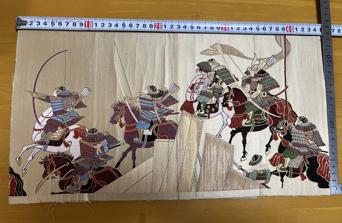 中央の屏風、実は、先日、鴻巣の人形店でゲットしてきた1枚50円の金蘭なんです😱💦武者もちゃんと刺繍なんですよ💕