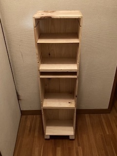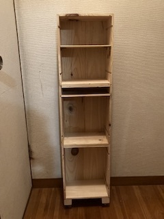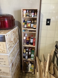 ワイン箱のショートサイズを繋げて、底にはキャスターをつけ、スパイスタワーを作ってみました