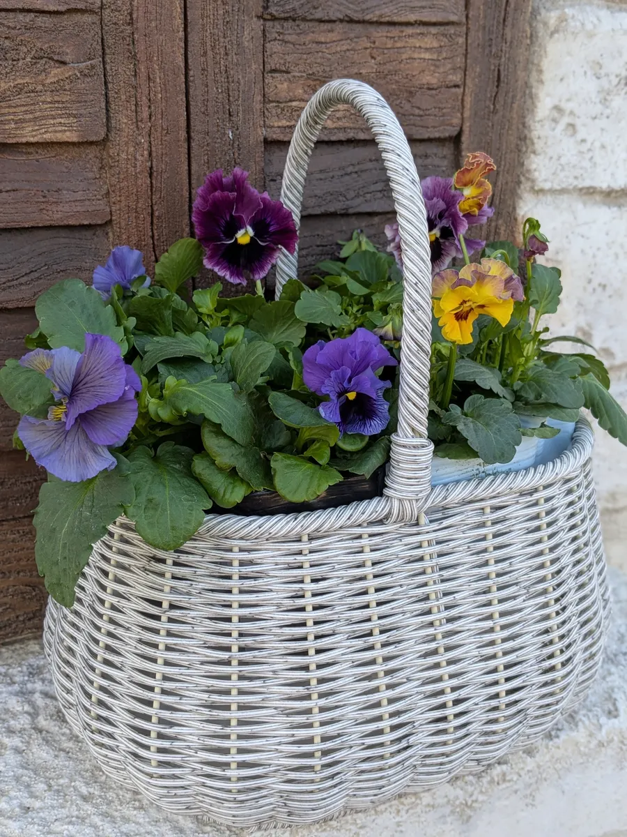 バスケットに苗入れてるだけでも見応えあります✨寄せ植えが楽しみですね😊