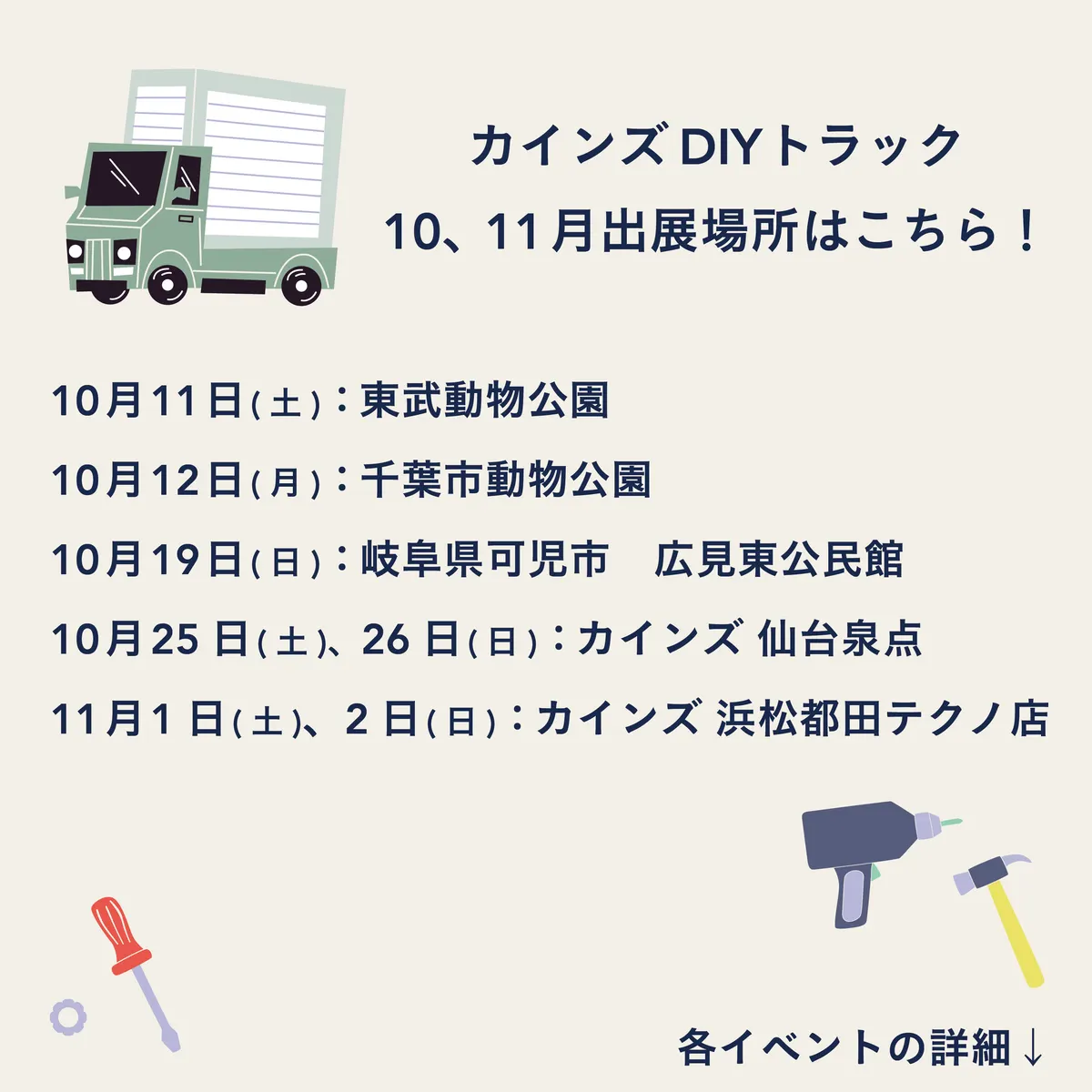 本日は移動型ワークショップ「カインズ DIY トラック」10、11月出展のお知らせです📢