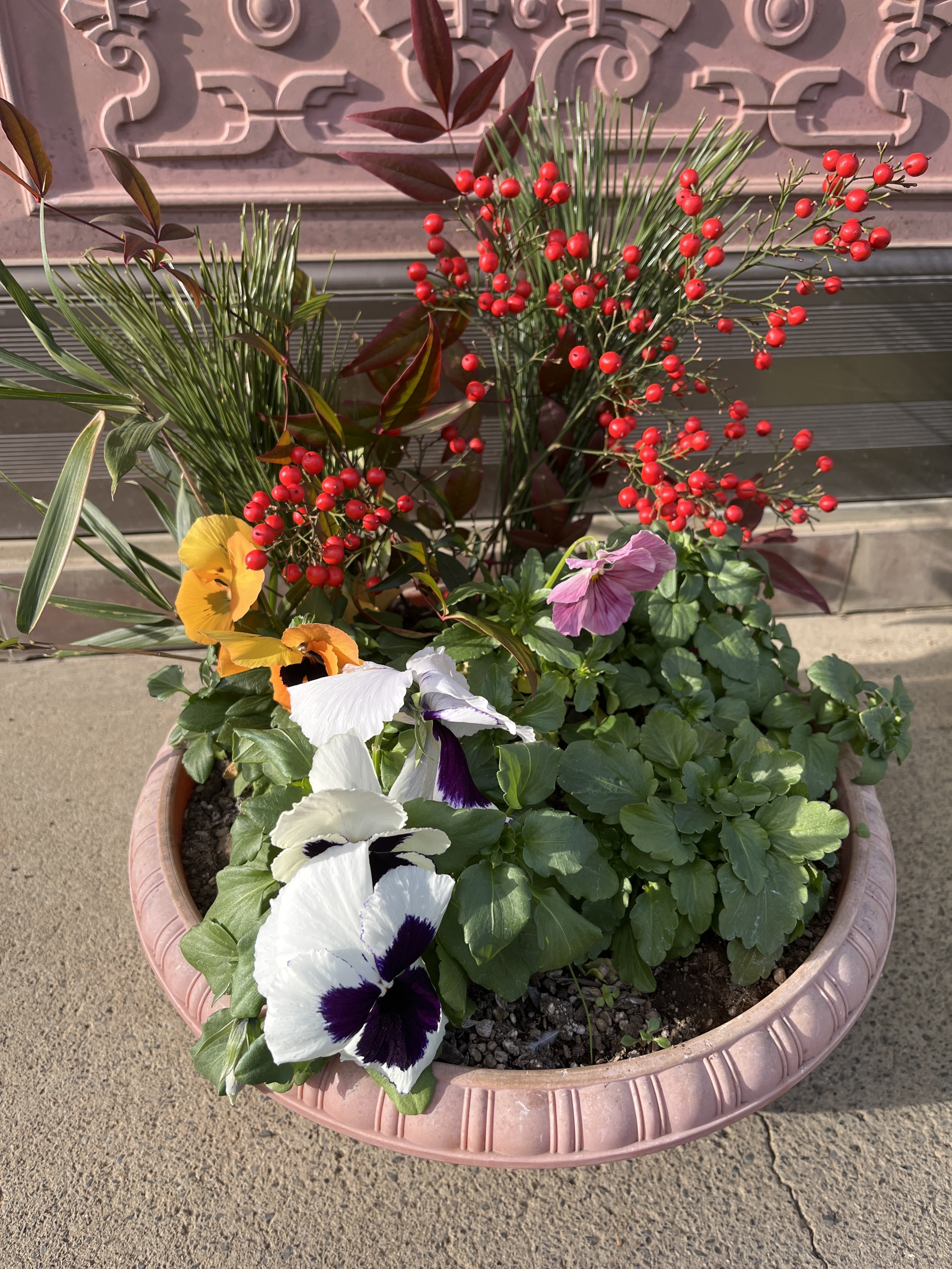 投稿を表示お庭の南天で より華やかに彩られて、とても素敵なお正月の寄せ植えですね✨