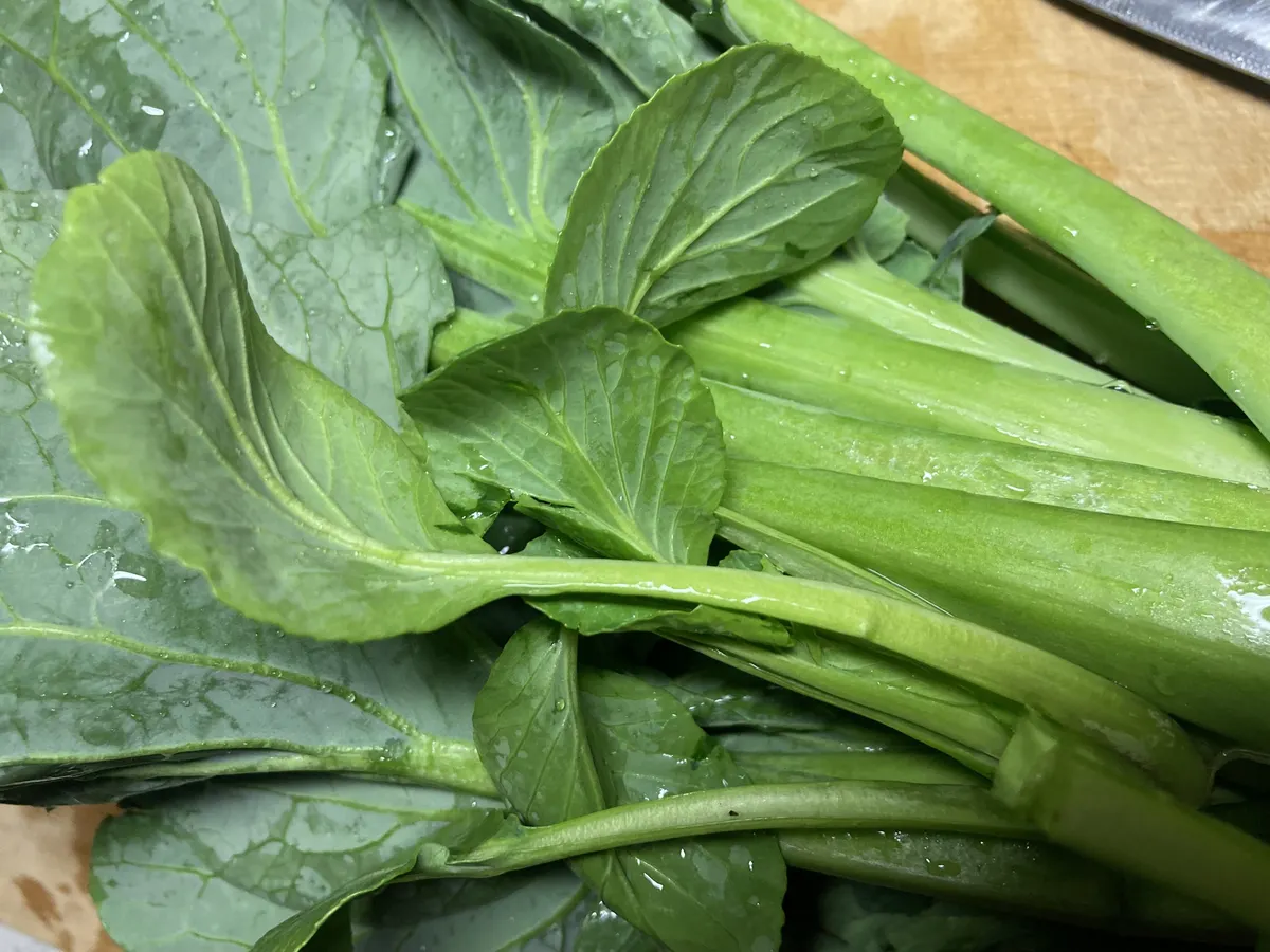 箸休めに茹でた べんり菜を添えて 一緒に食べています
