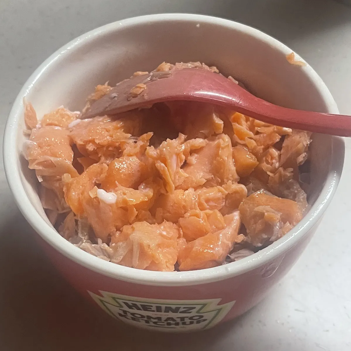 やっぱり鮭は大きめほぐしが食べ応えあっていいですねぇ🐟😋