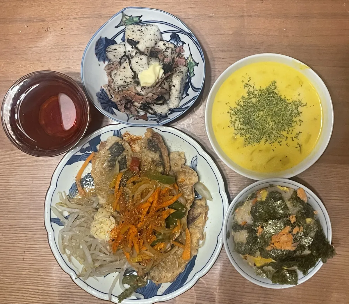 投稿を表示南蛮漬けのサクサク感、分かります。しっとりとさせないで食べたくなりますよね🐟️魚や野菜などバランスよいメニュー、見習わないとです。野菜ならキャベツ千切りにしとくかって、手を抜いてばかりです😅
