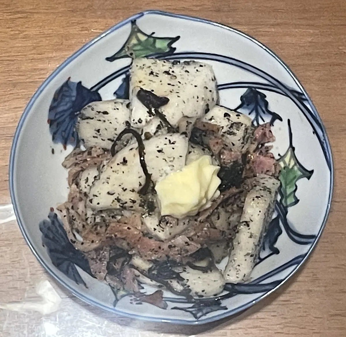 ・大根・ベーコン・塩昆布・黒擦り胡麻・胡麻油の和物✨