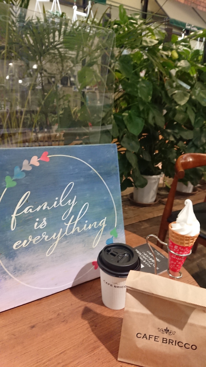 いつもはたい焼きを買って帰るのですが、今日はお洒落にカフェブリッコにてコーヒーとカップケーキ(アップルシナモン)買って楽しく記念撮影して帰りました❤️←時間の都合で🍦だけ急いで食べて後は持ち帰り🎵