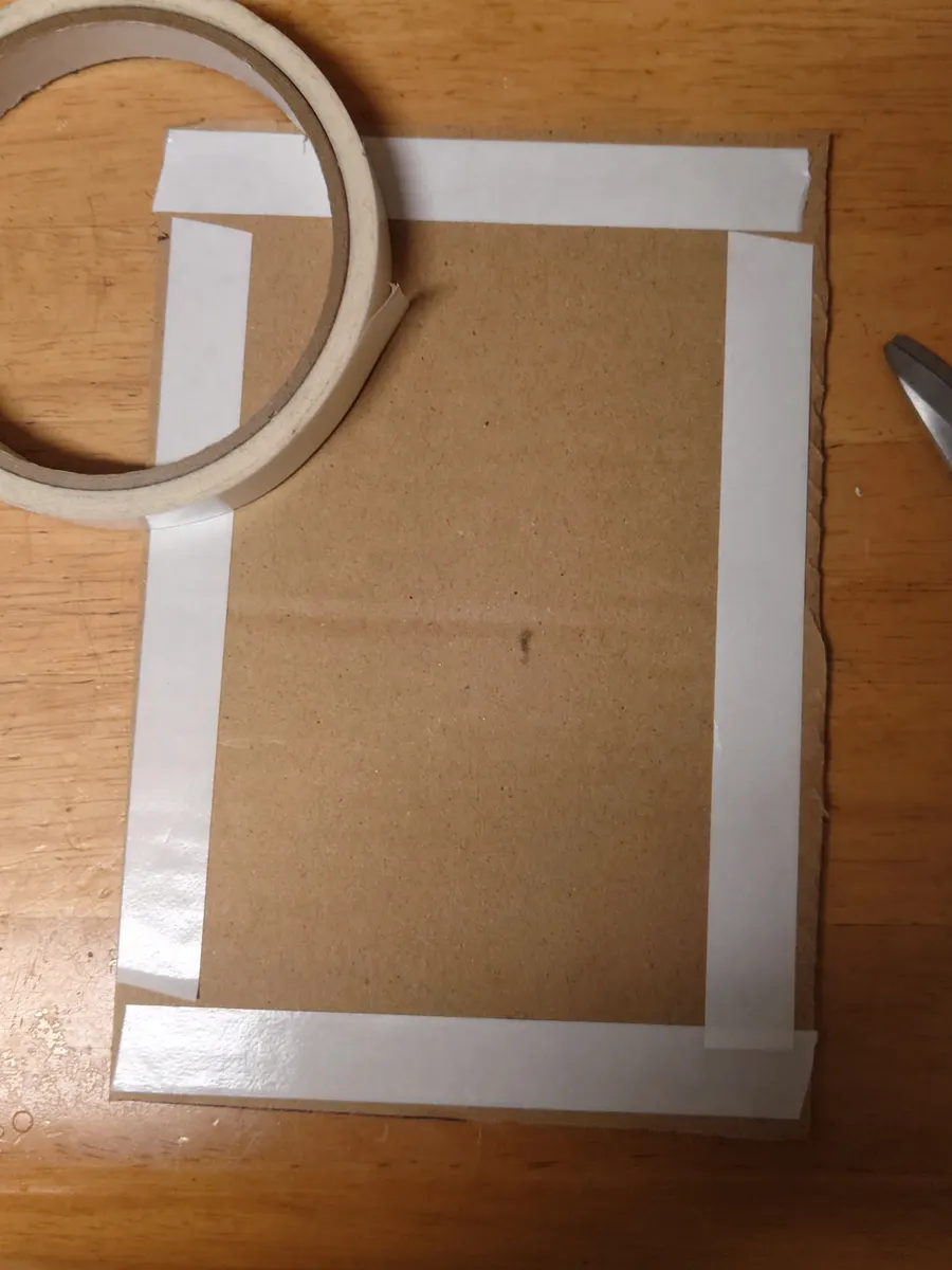 厚紙の表裏に両面テープを貼る