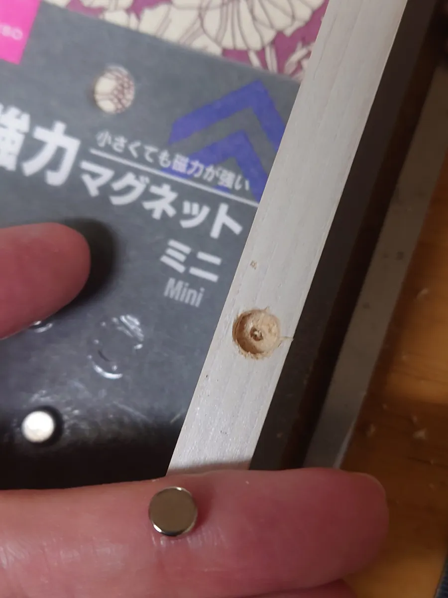 瞬間接着剤を流し込んでマグネットを貼り付けます
