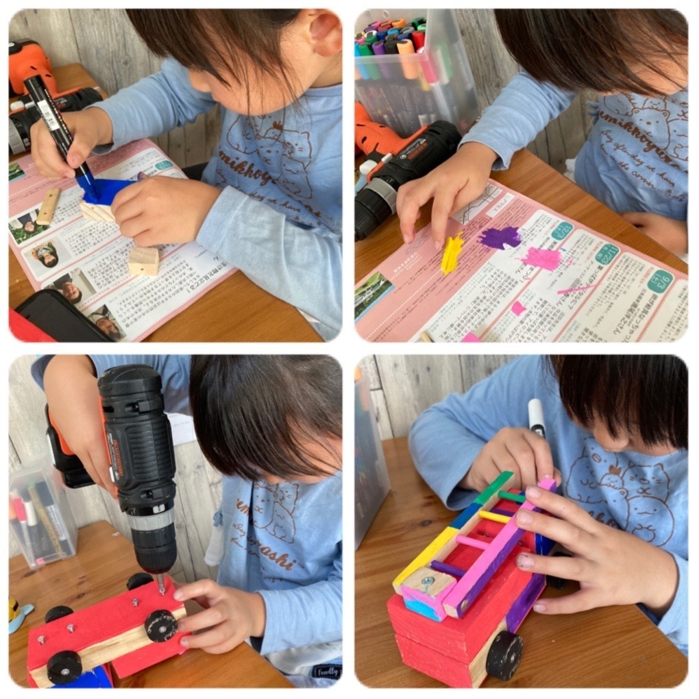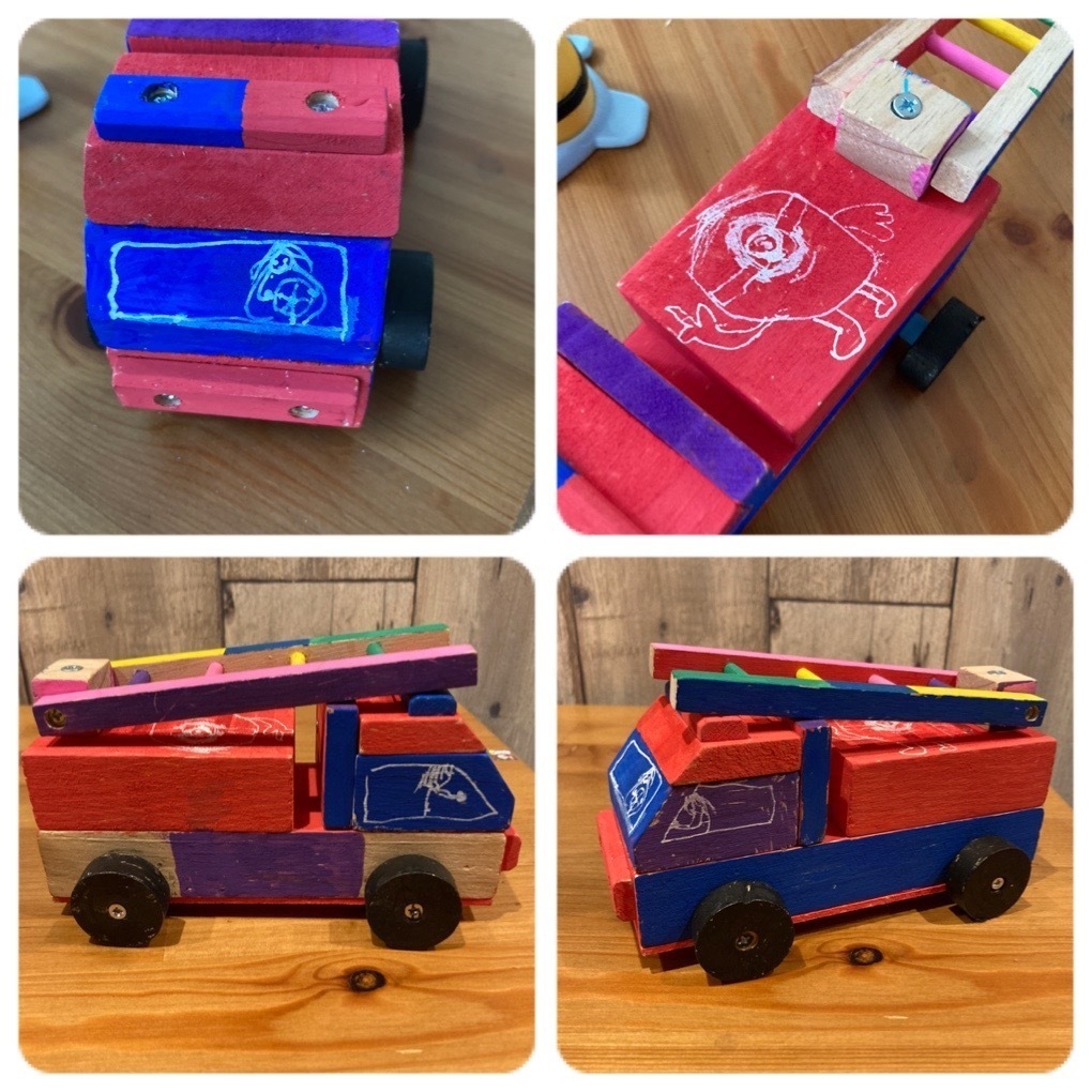 細かいところまで、工夫されてとっても可愛らしい消防車が完成ですね😃
