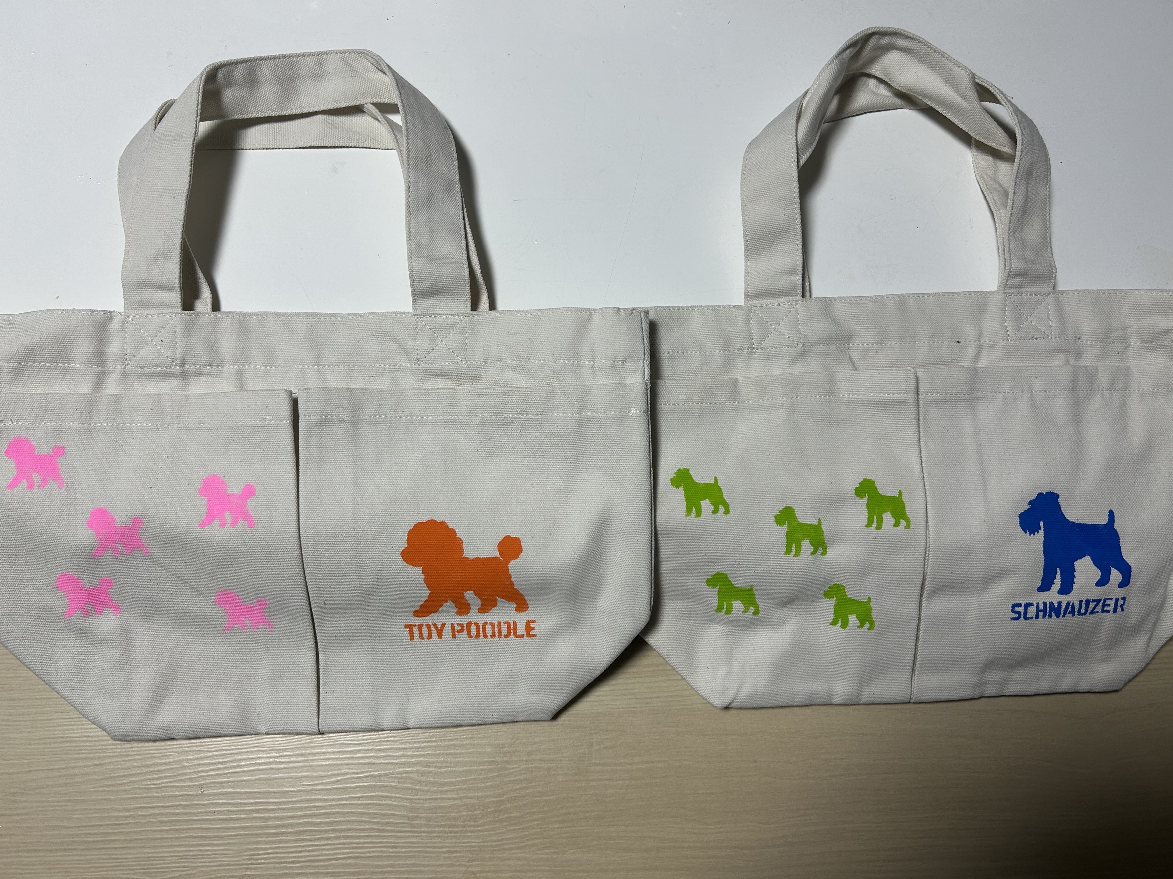 投稿を表示2匹のわんこのお散歩バックいいですね🥰今日は、のんびりお散歩バックのアレンジしてました🤗久々のミシン掛けたら曲がったけど🤣それもデザイン🤭