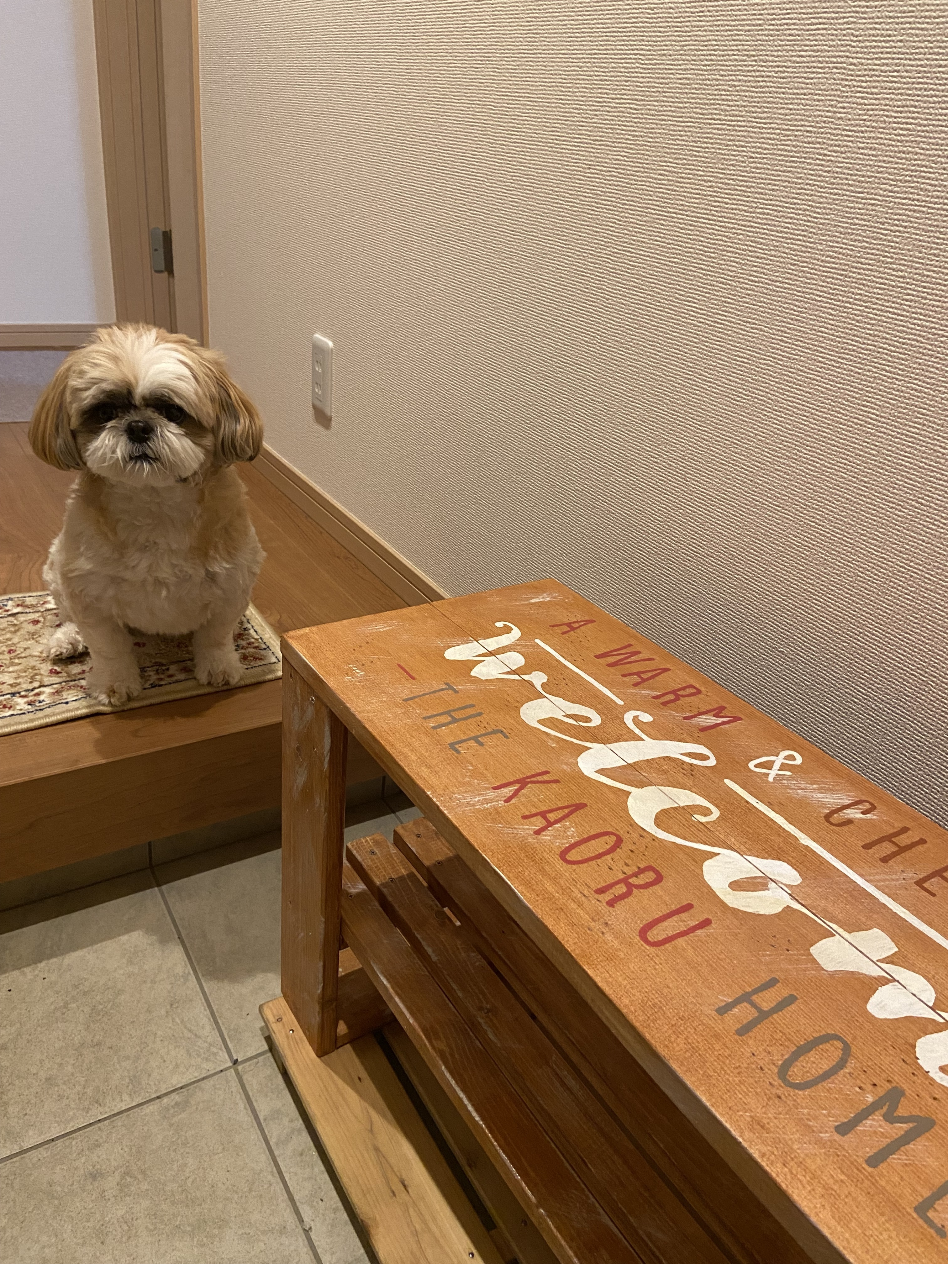お出迎えわ〜っ💓シーズー🐶ちゃん🐾💖お名前かおるちゃんですか?ちゃんとお座りお利口さん☺️