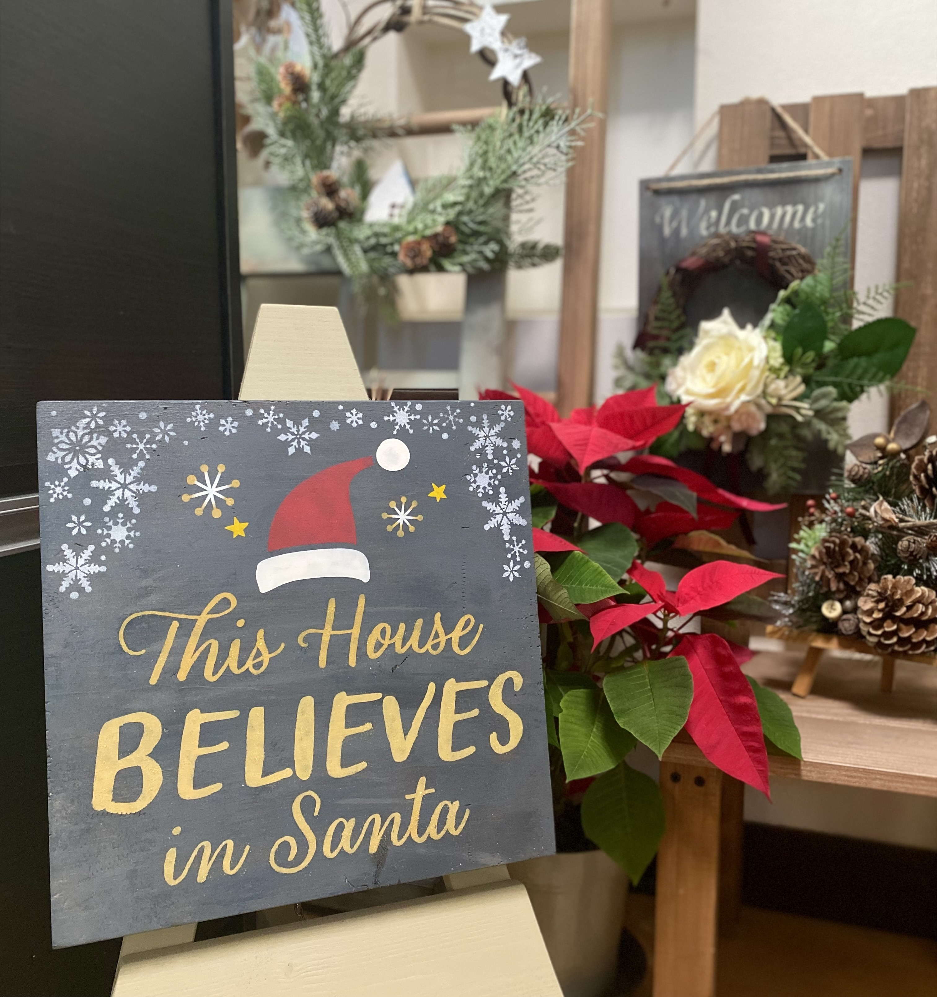 家は長年使ったリースが傷んでしまったので、リースの代わりにクリスマスのサインボードを作ろうかと思ってたんですが、このサイズ、どうにも思うデザインがなかったので、このアレンジ、すごく参考になりました!