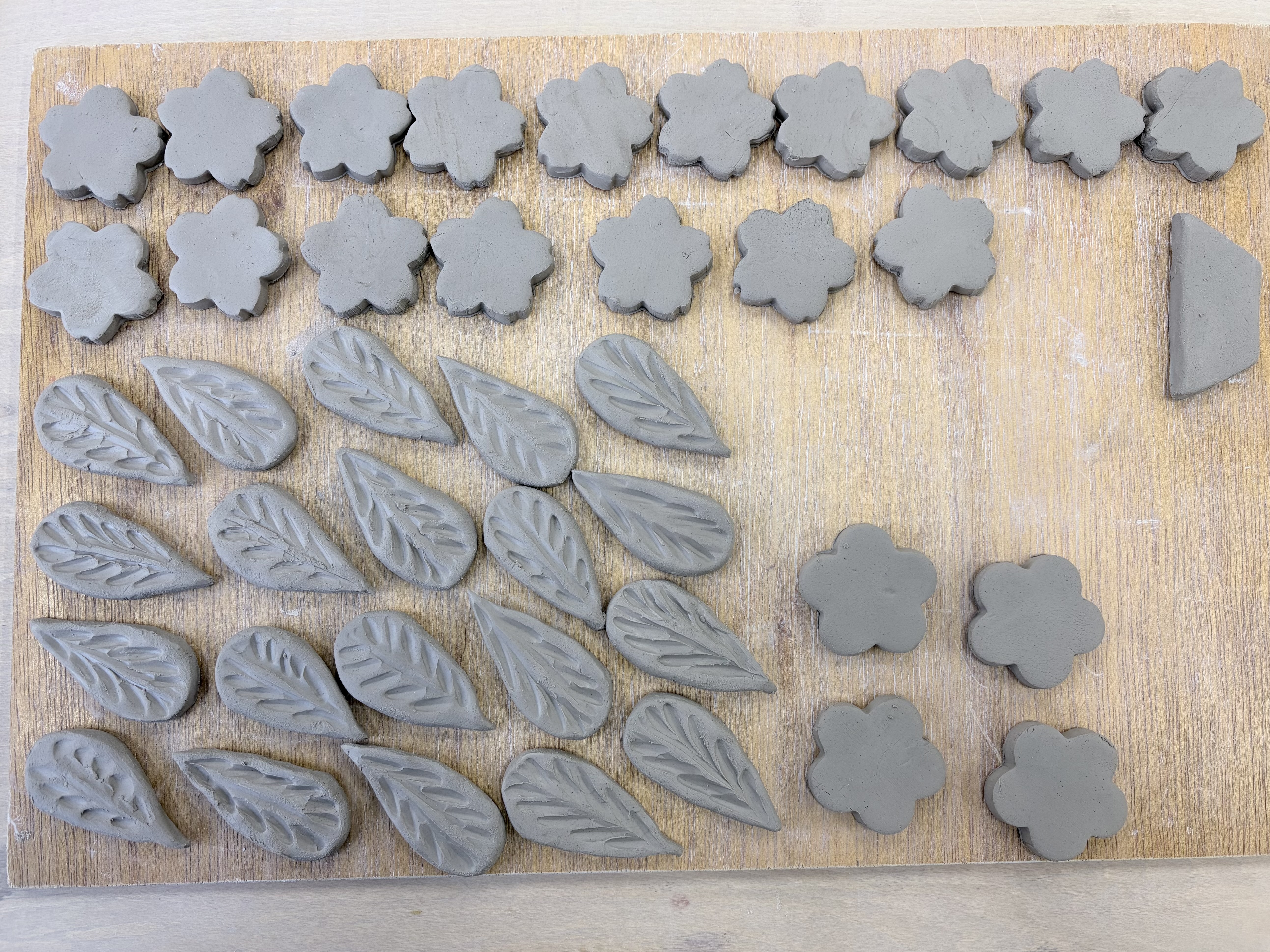 投稿を表示たくさん🥰こちらは型抜きを使ったんですね。葉っぱの葉脈も一つ一つ細かくて大変そう🍃でもすごく可愛いですね。釉薬掛けも数が多いので忙しくなりそうですね。焼くと少しは縮むと思うのですが、それも想定しての大きさですか😃タイル欲しいけど、使い道がないので、かずんさんがどんな作品になさるのか楽しみです。