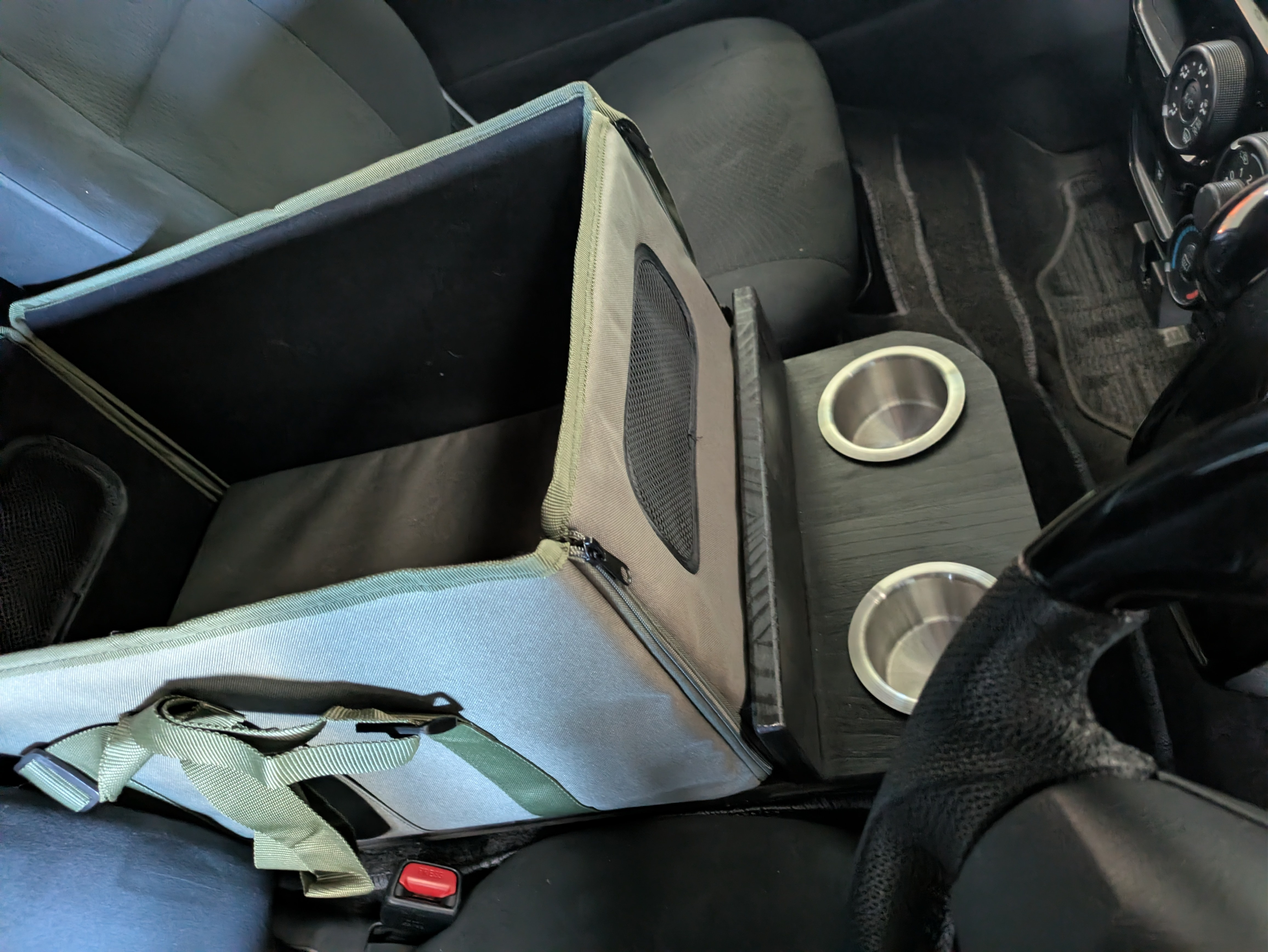 愛犬🐾のドライブBOXを置く為に、ハイエースのコンソールBOXを外してカップホルダーを付属したドライブBOX置きを作りました👍✨