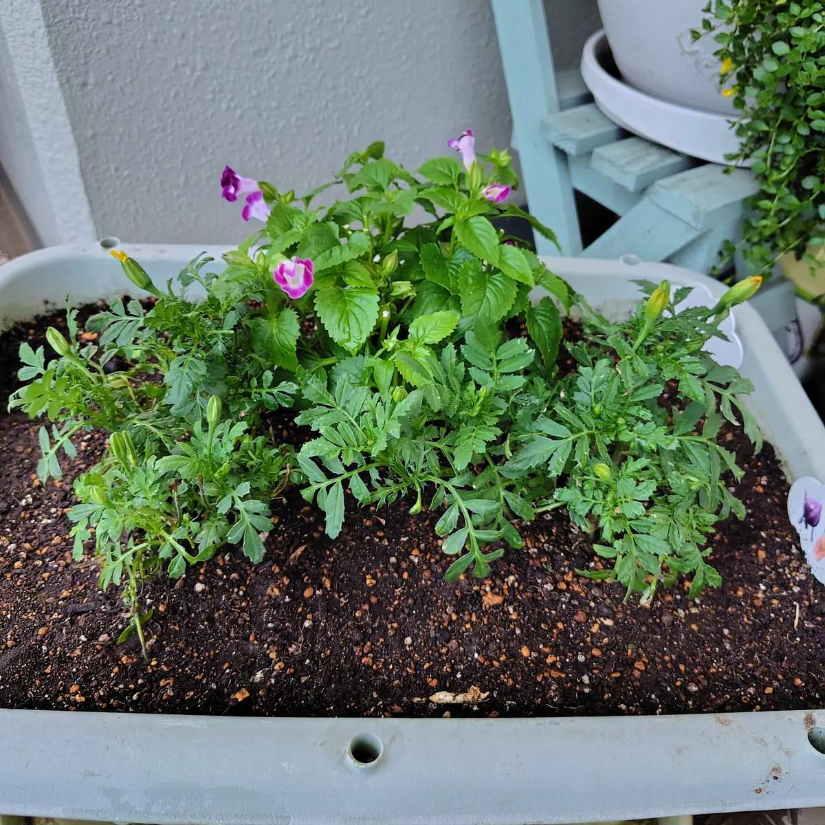 トップ > DIYアワード2025 > キャンペーン > お得に寄せ植え♪ らてりん 2025/10/02 18:44 お得に寄せ植え♪ ■作品内容 セール品3ポット(計110円)で寄せ植え。マリーゴールドとトレニアが綺麗に咲きました〜。 ■こだわりポイント 元気がなくなりセール品になってしまった苗から、復活しそうなものを選抜。見事に花が咲いてくれると嬉しくなります。 今回は花の色が分かる苗を選びましたが、どんな花になるか分からないで寄せ植えするのも楽しいかもです。 〈7月購入時〉 〈10月満開時〉 グリーン部門【DIYアワード2025】 寄せ植え マリーゴールド トレニア いいね 共有する 共有する X LINE リンクをコピー コメントする 0 件の返信 (新着順)