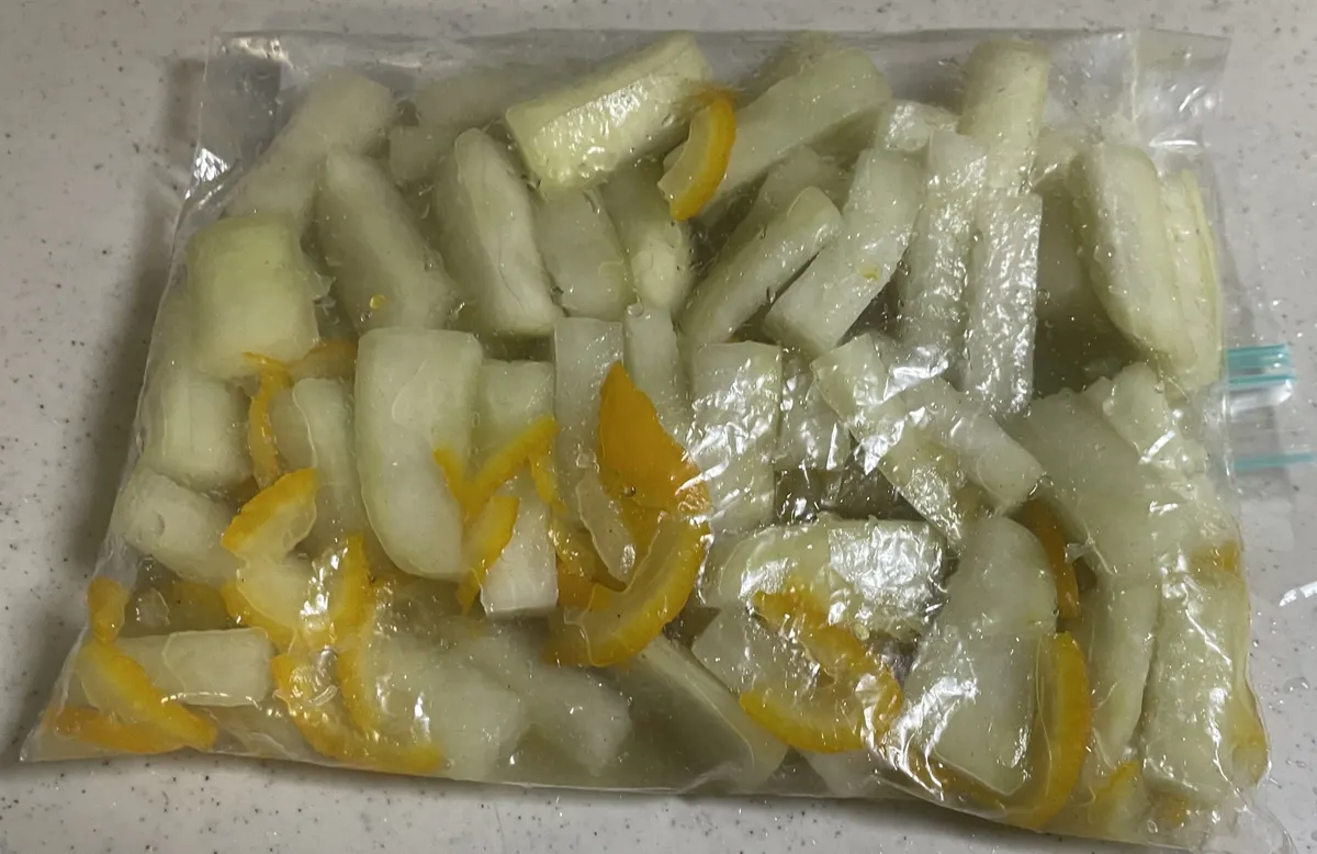 1個99円で買えた柚子の皮を半分冷凍しといたので、初挑戦ながら柚子大根もやってみよかなってぇ〜😆🙌🍊🤍🔰🆕‼️💨✨