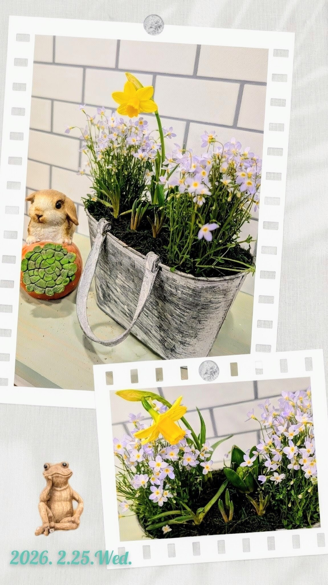 トップ > ワークショップ > その他 > 💛春を待つ芽出し球根のアンティーク寄せ植え🩷💙 nonparu(๑•᎑•๑) 2026/02/25 14:00 💛春を待つ芽出し球根のアンティーク寄せ植え🩷💙 午前中に、久しぶりのGreenWSに行ってきました😊 ヒヤシンス🩷と ムスカリ💙は まだ小さいのですが、これから春に向けて元気に成長してくれると思います😃 みんな咲いたら綺麗だろうな~✨️楽しみです🎶 いいね 共有する 共有する X LINE リンクをコピー コメントする 1 件の返信 (新着順) ミュートしたユーザーの投稿です。 投稿を表示 ハッピー 2026/02/26 00:35 花が咲くのが待ち遠しいですね🥰 いいね 返信する ミュートしたユーザーの投稿です。 投稿を表示 nonparu(๑•᎑•๑) 2026/02/26 06:33 ハッピー コメントを ありがとうございます😊 可愛いお花が咲くのが楽しみです💕 いいね 返信する