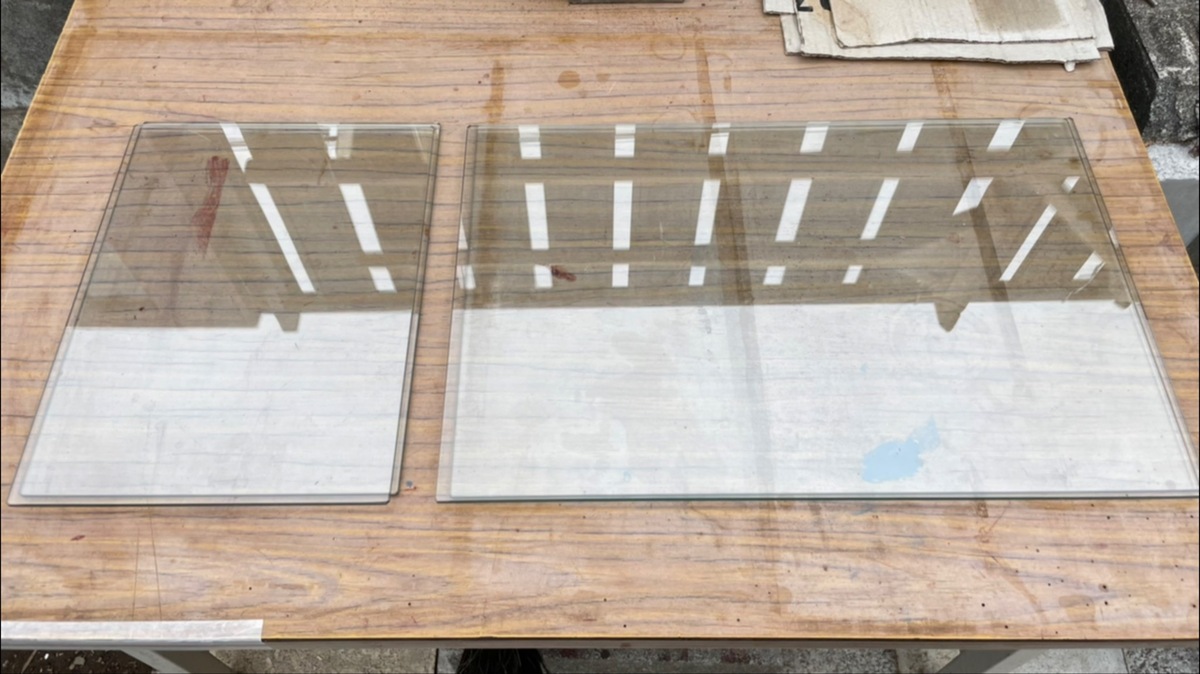 以前解体したテレビ台(AVキャビネット)から出た約4ミリ厚のガラス板をミニテーブルの天板としてアレンジしました。