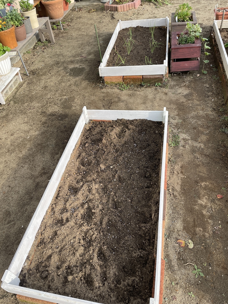 初めての玉ねぎ苗の植え付けと現在の花壇の様子