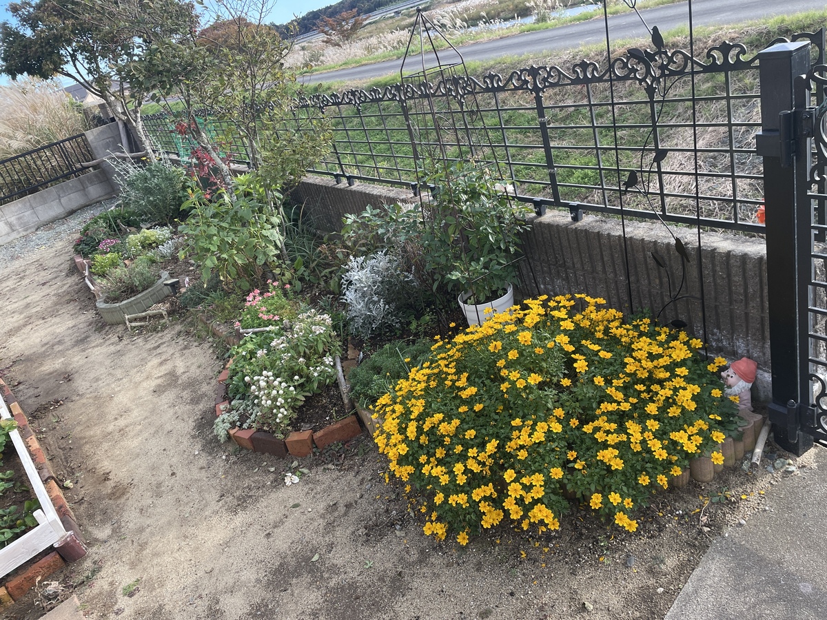 この黄色い花は1株からこんなに大きくなりました(^^)/夏はきゅうりの苗を植えていた所です。