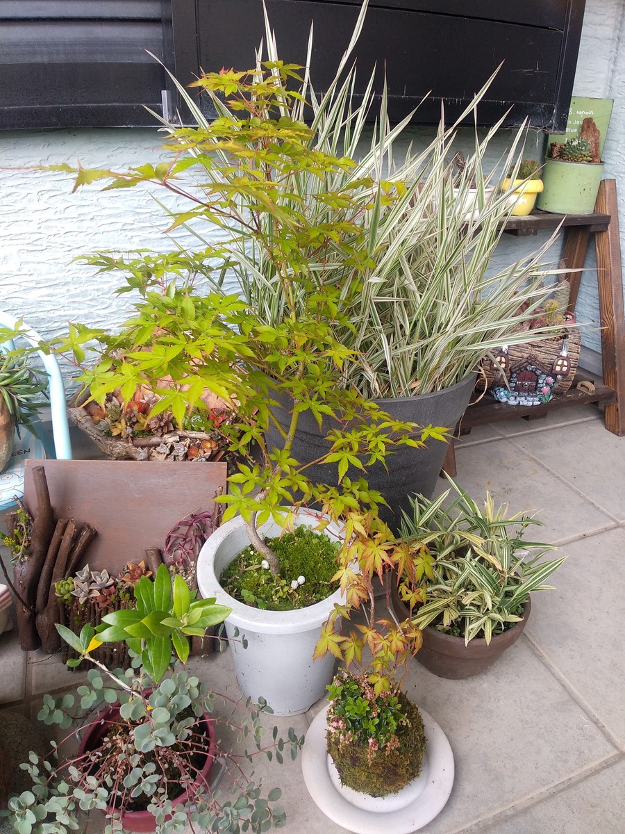 植木まつりで作った苔玉をメインに飾りたかったので、鉢植えの多肉は移動させて、