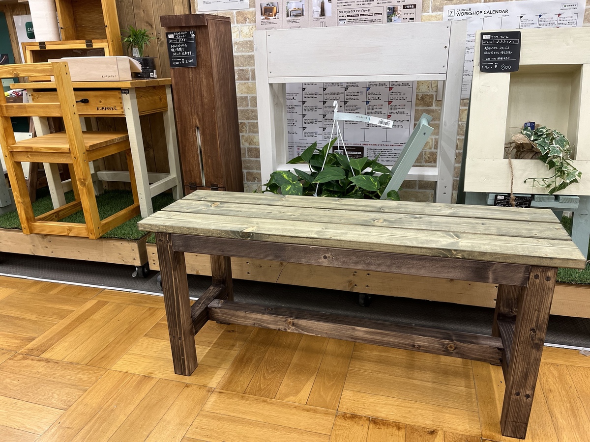 投稿を表示ロングベンチいいですね🤗作りたいけど🤣来月は、カフェ風ベンチとかあったけど、そんなオシャレな椅子が似合う家ではないので😅