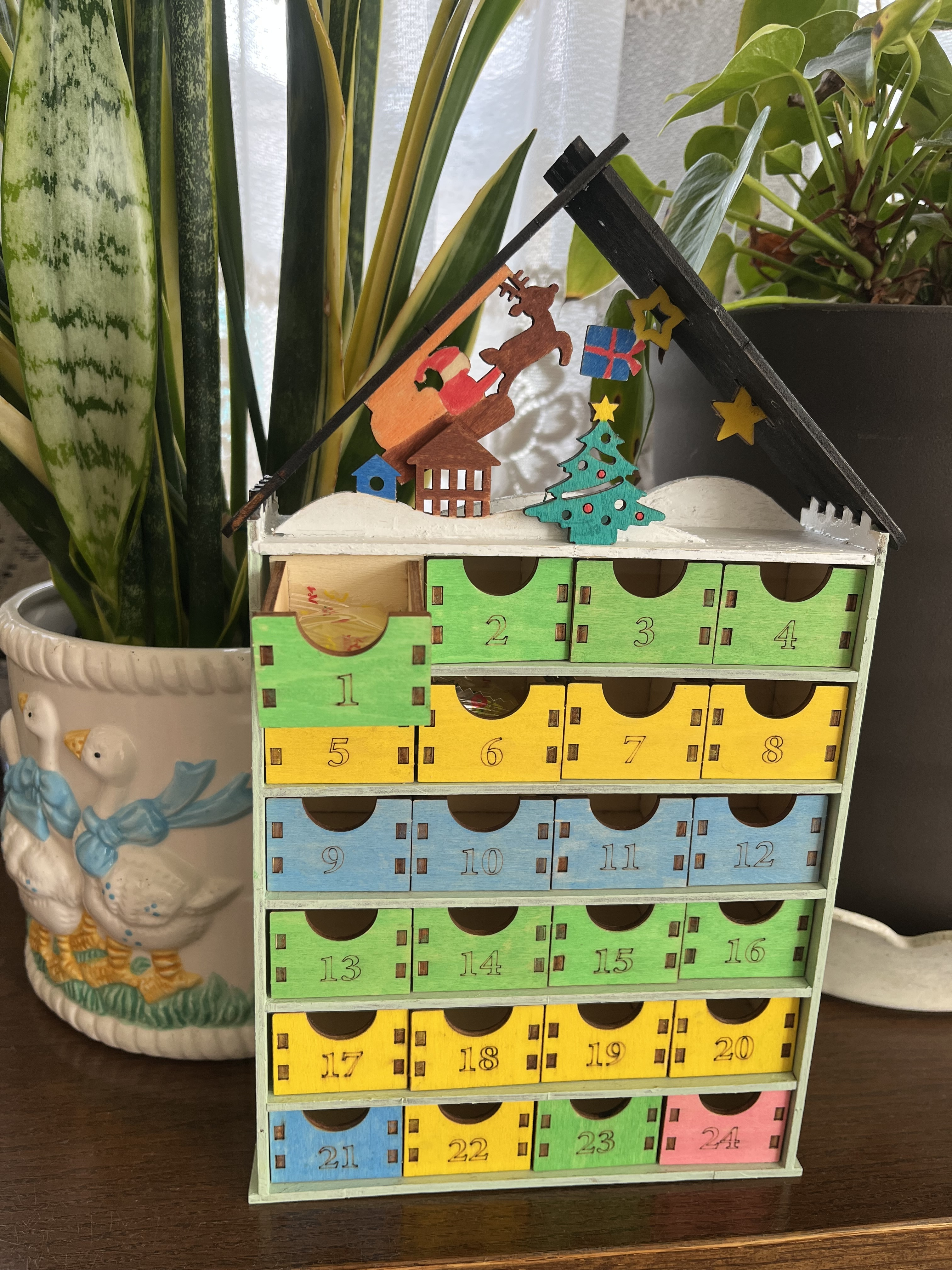 トップ > クリスマスDIY2025 > キャンペーン > アドベントカレンダーを作りました toshi 2025/12/02 13:34 アドベントカレンダーを作りました ■作品内容 アドベントカレンダー ■工夫ポイント これは昨年作った物です キットを購入したのですが組み立て後、色を塗った方が良いなと思い少しカラフルにしました 今まで我が家にあったアドベントカレンダーは熊さんを日付ごとに動かしていくタイプでした なので中に何か入れられる物が欲しかったのです 去年はシルバニアの小さなパーツを一つずつ入れました 今年は手抜きをしてしまいキャンディーを入れてます ■使用した商品 アドベントカレンダーキット 水性マーカー いいね 共有する 共有する X LINE リンクをコピー コメントする 4 件の返信 (新着順) ミュートしたユーザーの投稿です。 投稿を表示 ダンボ 2025/12/05 17:16 とても素敵でかわいいです! いいね 返信する ミュートしたユーザーの投稿です。 投稿を表示 toshi 2025/12/05 17:18 ダンボ ダンボさん、ありがとうございます😊アドベントカレンダー考えた人凄いですよね 楽しみになりますね😊 いいね 返信する ミュートしたユーザーの投稿です。 投稿を表示 happyくぅ 2025/12/03 17:08 クリスマスが、ますます楽しみになるアイテムですね🎄 カラーも後ろのアヒルさんの鉢ともよく合っていて、素敵です✨️ いいね 返信する ミュートしたユーザーの投稿です。 投稿を表示 toshi 2025/12/03 17:15 happyくぅ happyくぅさん、ありがとうございます😊アドベントカレンダー、楽しみになりますよね やっぱクリスマスは最高の行事ですね😊 いいね 返信する ミュートしたユーザーの投稿です。 投稿を表示 yuco 2025/12/03 05:11 かわいいですね〜💕 毎日、引き出し開けるのが、楽しくなりそう😊 いいね 返信する ミュートしたユーザーの投稿です。 投稿を表示 toshi 2025/12/03 05:43 yuco yucoさん、おはようございます😊色を塗ろうかどうしようかと悩んだのですが塗って良かったです 中に何を入れたら良いか悩みますね いいね 返信する ミュートしたユーザーの投稿です。 投稿を表示 CHIE☆ 2025/12/02 22:38 カラフルも良いですね❣️ クリスマス🎄までワクワクしちゃいますね😊 いいね 返信する ミュートしたユーザーの投稿です。 投稿を表示 toshi 2025/12/03 05:50 CHIE☆ CHIEさんらコメントありがとうございます😊クリスマスグッズはテンション上がりますよね またプレゼントもらう側になりたいなぁ😊 いいね 返信する