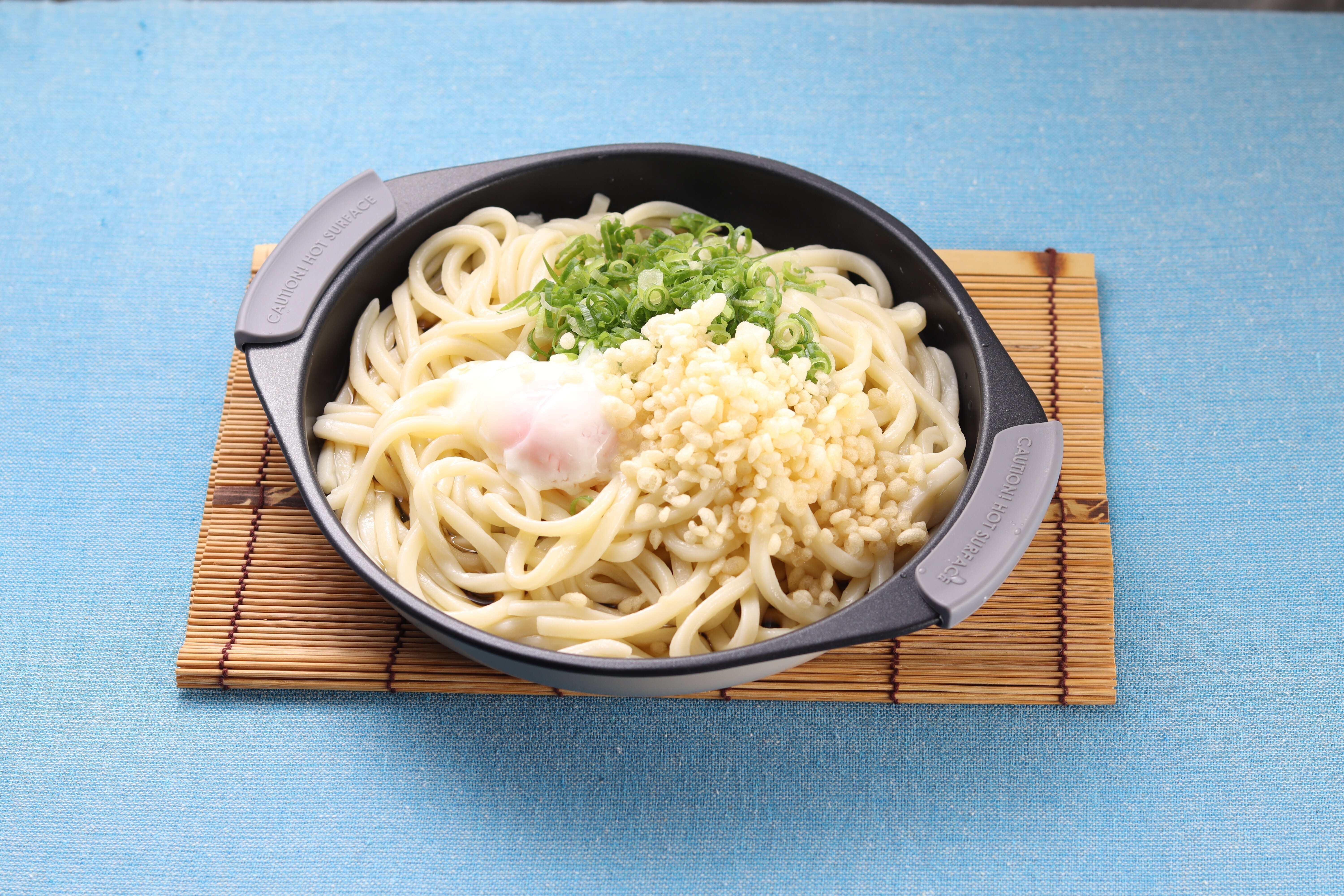 | ④水気を切り、レンジグリルに戻し、天かす、青ねぎ小口切り、温泉卵をのせる。麺つゆをかけていただく。 |