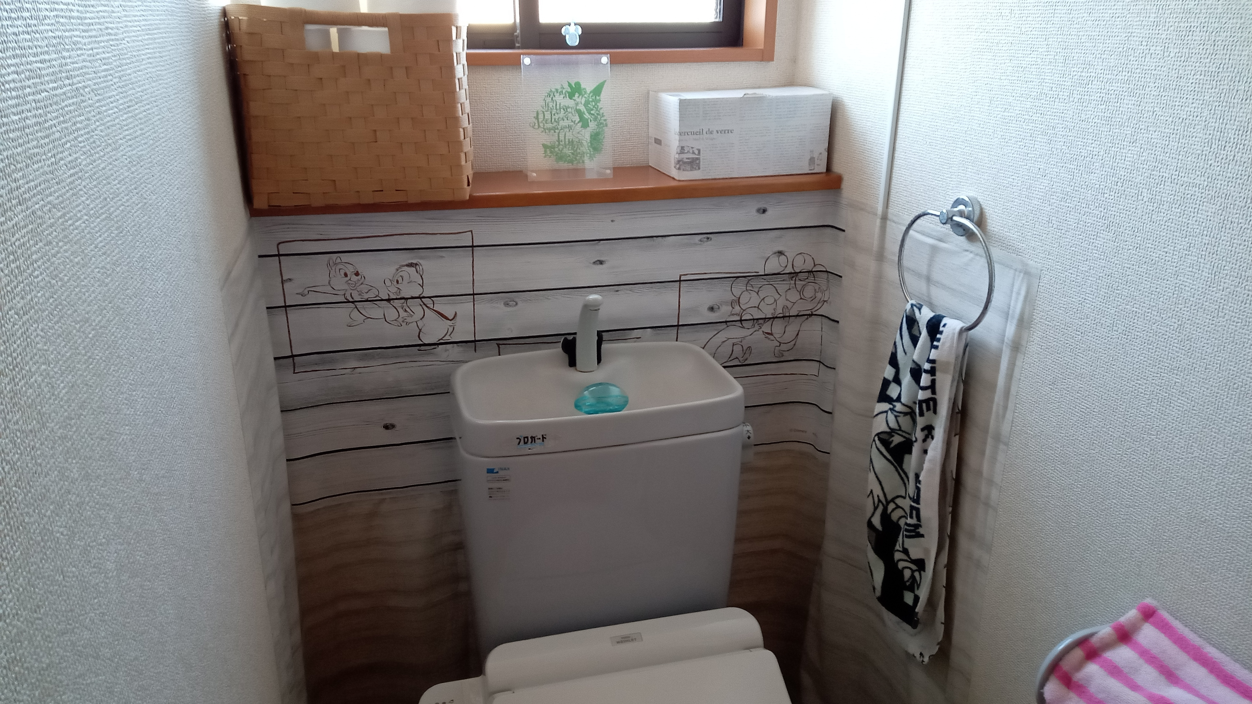 トップ > DIY > その他 > トイレの壁に🐿️ happiness 2025/12/16 17:05 トイレの壁に🐿️ トイレのタンクの周りの壁に水が飛ぶのが気になっていたので100均材料でカバーしてみました☺️ 貼る前貼った後テーブルクロスにチップとデールのリメイクシートを貼ってから壁に両面テープでつけました😊壁にマスキングテープを貼った所に両面テープがくるように貼ったので、汚れたり飽きたらまた簡単に変えられます🤗 いいね 共有する 共有する X LINE リンクをコピー コメントする 1 件の返信 (新着順) ミュートしたユーザーの投稿です。 投稿を表示 ダンボ 2025/12/17 09:21 いい感じになりましたね! いいね 返信する ミュートしたユーザーの投稿です。 投稿を表示 happiness 2025/12/17 12:58 ダンボ ダンボさん ありがとうございます😊 年内にできてよかったです☺️ いいね 返信する