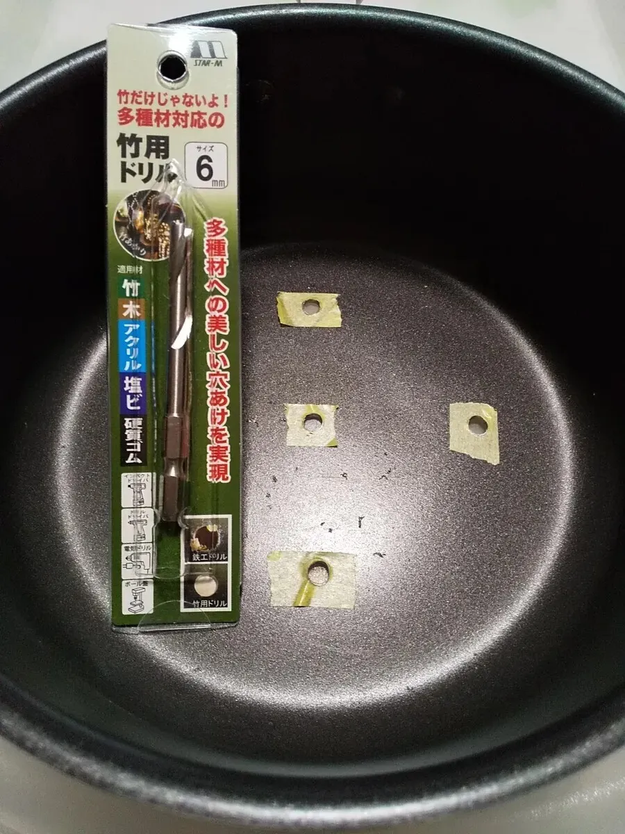 投稿を表示竹用ドリルでお鍋に穴が空けられるとはΣ(゚д゚;)ビックリ💦