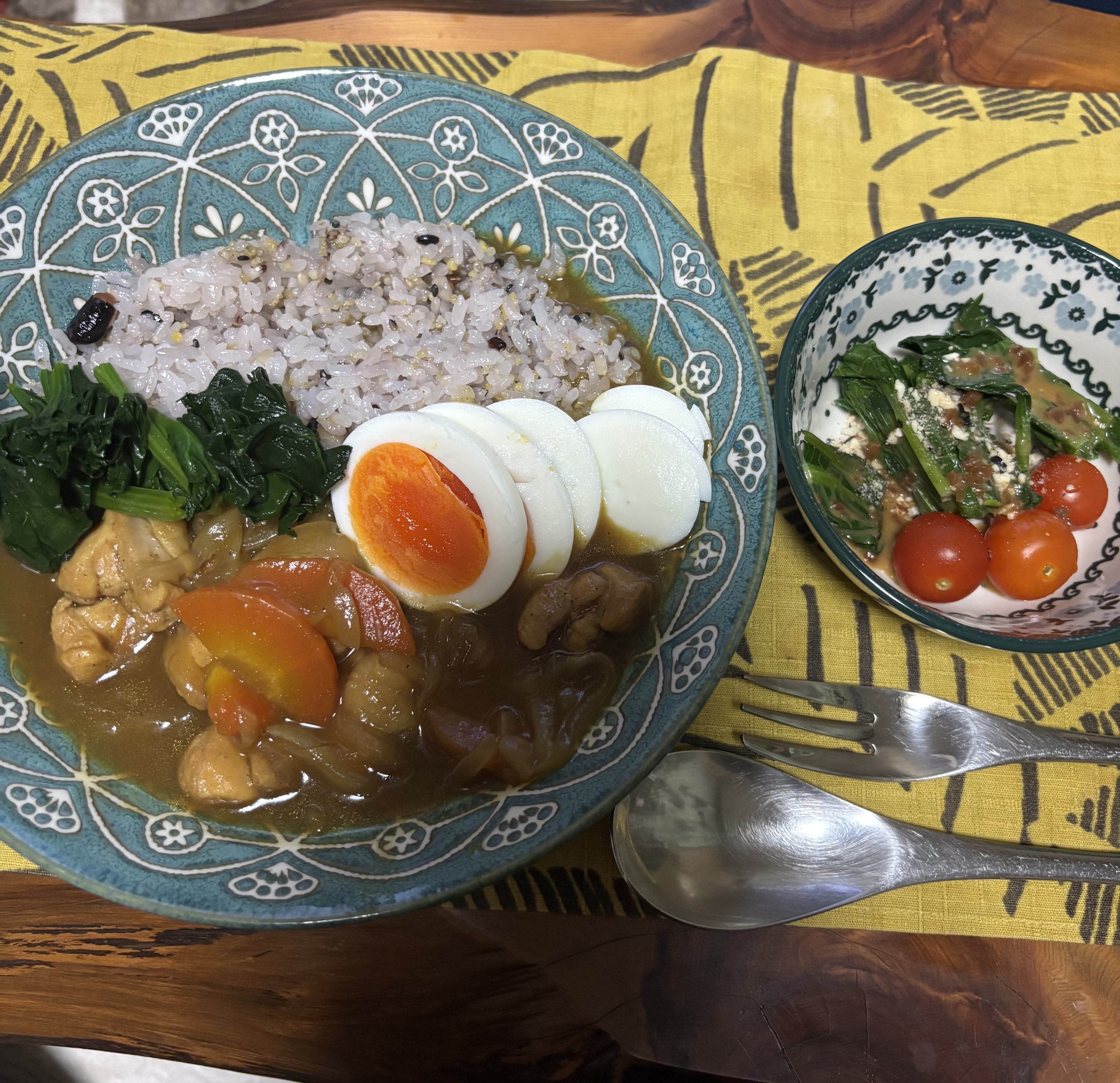 トップ > クッキング > 料理 > カレー cecil 2026/02/11 19:36 カレー 昨日のゆで鶏のスープを使ってカレーを作りました。 ゆで卵とほうれん草のトッピングが私の定番です。 カレーにはじゃがいもはいれない派🥔 最近のルーは赤缶がお気に入りです🍛 いいね 共有する 共有する X LINE リンクをコピー コメントする 1 件の返信 (新着順) ミュートしたユーザーの投稿です。 投稿を表示 まろん 2026/02/12 07:35 美味しい😋そうです😋 米は五穀米ですか 食べたくなりました🎶❤️ いいね 返信する ミュートしたユーザーの投稿です。 投稿を表示 cecil 2026/02/12 08:41 まろん ありがとうございます😊 そうなんです、五穀米です! 白米と五穀米をおかずに合わせて食べ分けています♫ 明太子やお漬物の時は断然白米です🍚 いいね 返信する