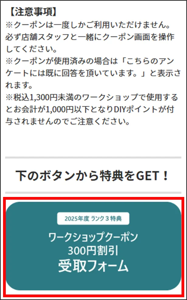 (3) クーポンの案内を確認し、一番下にある受取フォームのボタンをタップ