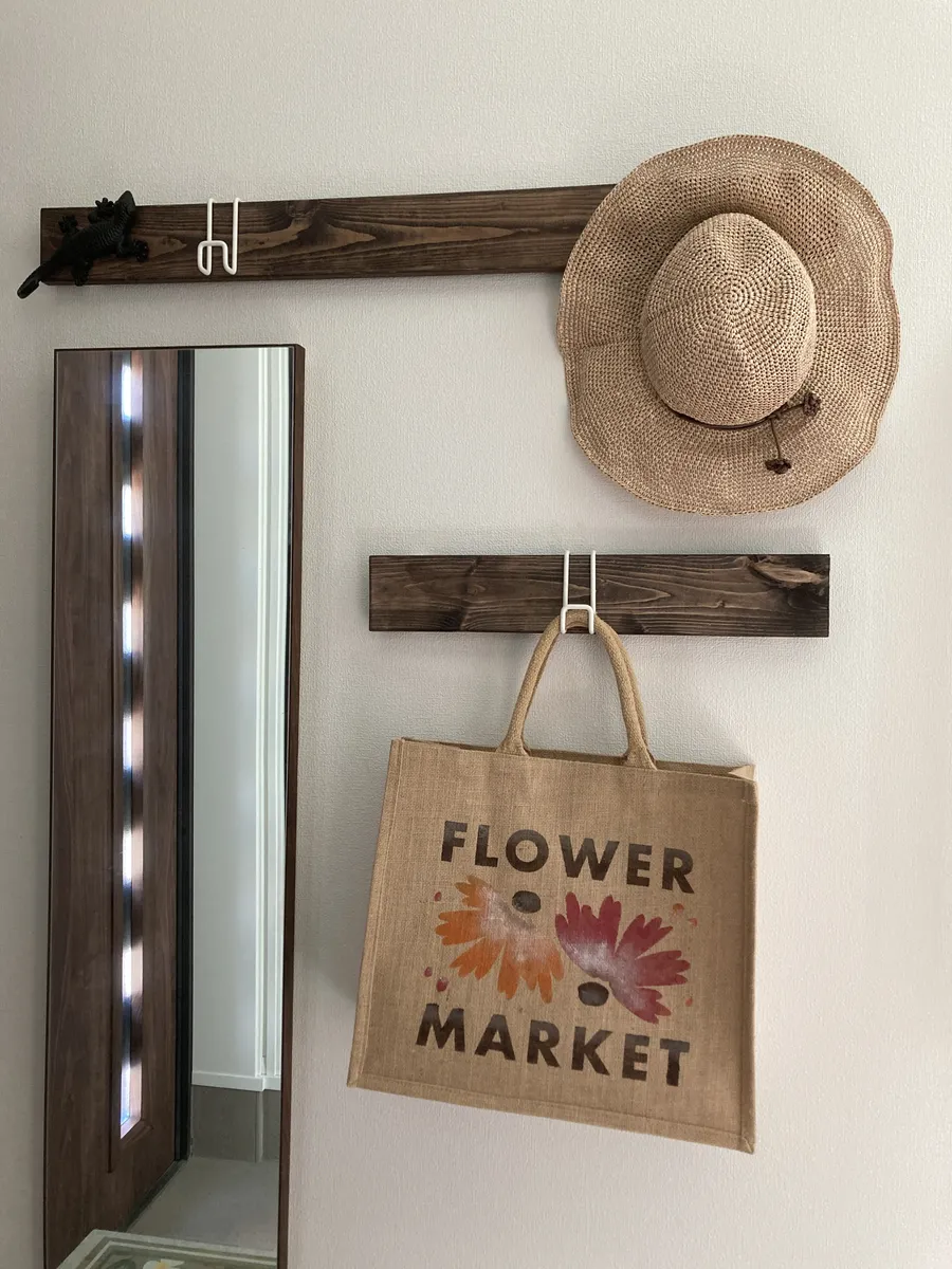 トップ > DIYアワード2025 > キャンペーン > ナゲシレール モミ 2025/10/04 21:11 ナゲシレール ■作品内容 ナゲシレール ■こだわりポイント 狭い玄関ですが、飼い猫の毛をつけないためにお客様用のコート掛けを作りました。 アイキャッチ画像からぱっと見、見えませんが左上のトカゲの🦎フックがお気に入り。一目惚れです。 まだハンガーを買っていないので、それまでは間は帽子とカバンをかけています。 くらしに、ららら。部門【DIYアワード2025】 木工DIY部門【DIYアワード2025】 リフォーム・エクステリア部門【DIYアワード2025】 いいね 共有する 共有する X LINE リンクをコピー コメントする 1 件の返信 (新着順) ミュートしたユーザーの投稿です。 投稿を表示 もん 2025/10/05 08:16 お客様への心遣いが感じられるオシャレな玄関ですね。 WSのベンチやスツールも雰囲気にピッタリで素敵💕 いいね 返信する ミュートしたユーザーの投稿です。 投稿を表示 モミ 2025/10/05 12:01 もん ありがとうございます。 狭い玄関なので、好きなテイストをぎゅっと詰め込みました。 一旦、玄関のDIYはこれで完成で様子を見るつもりです。 いいね 返信する