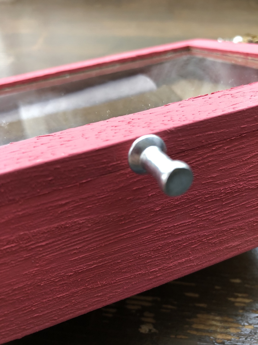 主な材料🌸100均で買ってきたインテリアコレクションケース マグネット式、スポンジ、フェルト、フェイクレザー アルミピン、ベリーピンク塗料。
