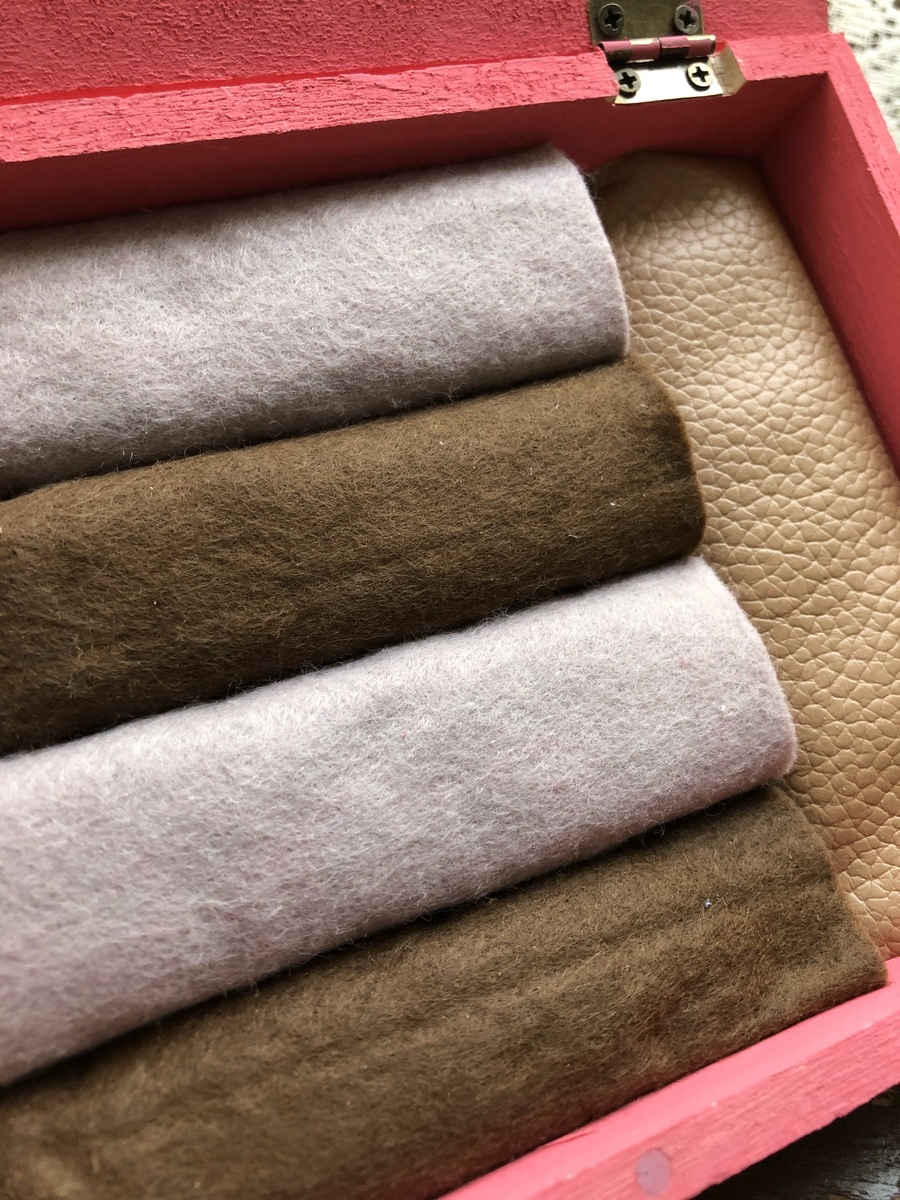 本体となるコレクションケースをベリーピンクで色付け。スポンジを縦半分に切りフェルトで覆いました。