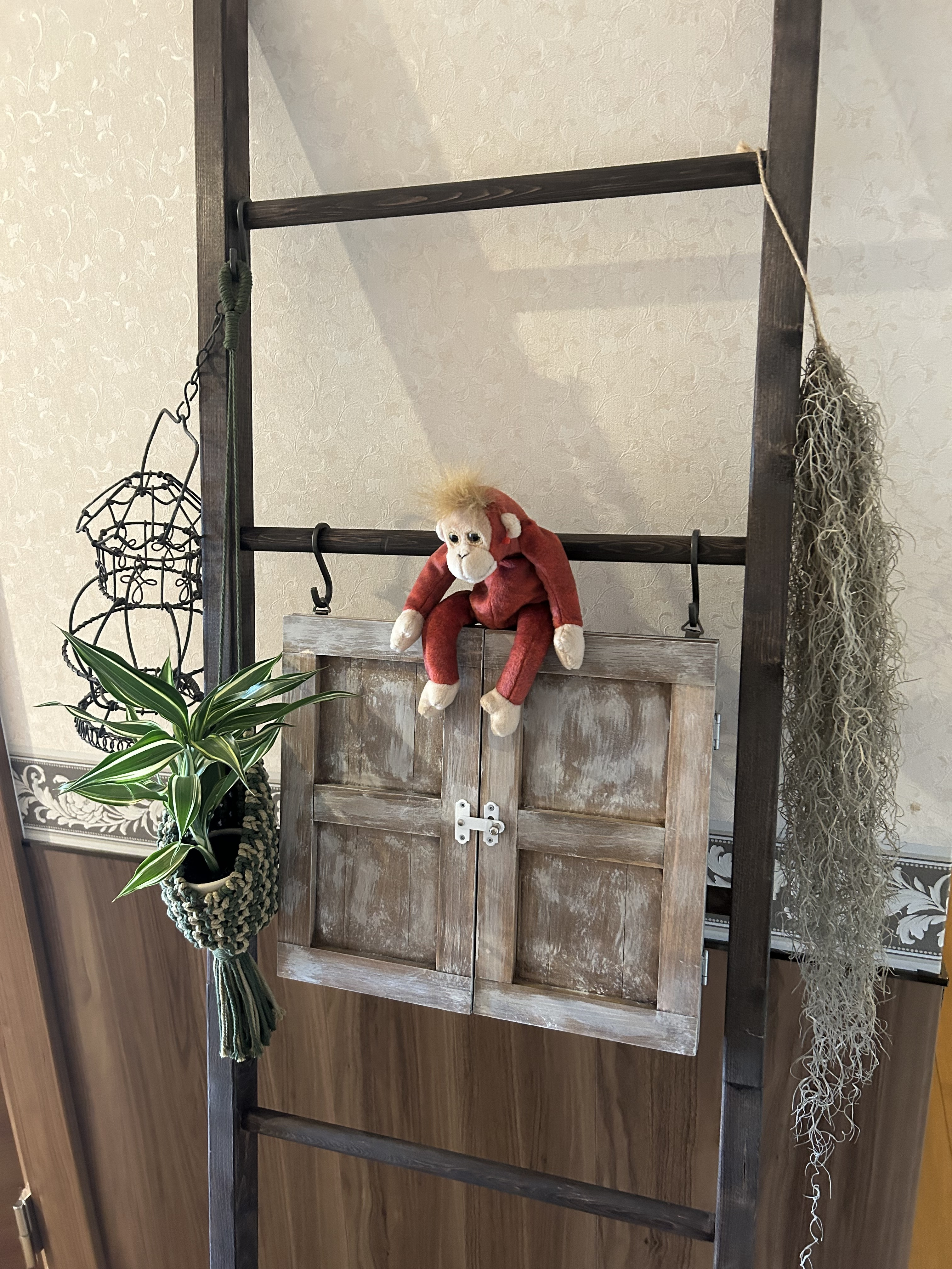 投稿を表示ラダーにフックでぶら下げるの素敵ですね🥰