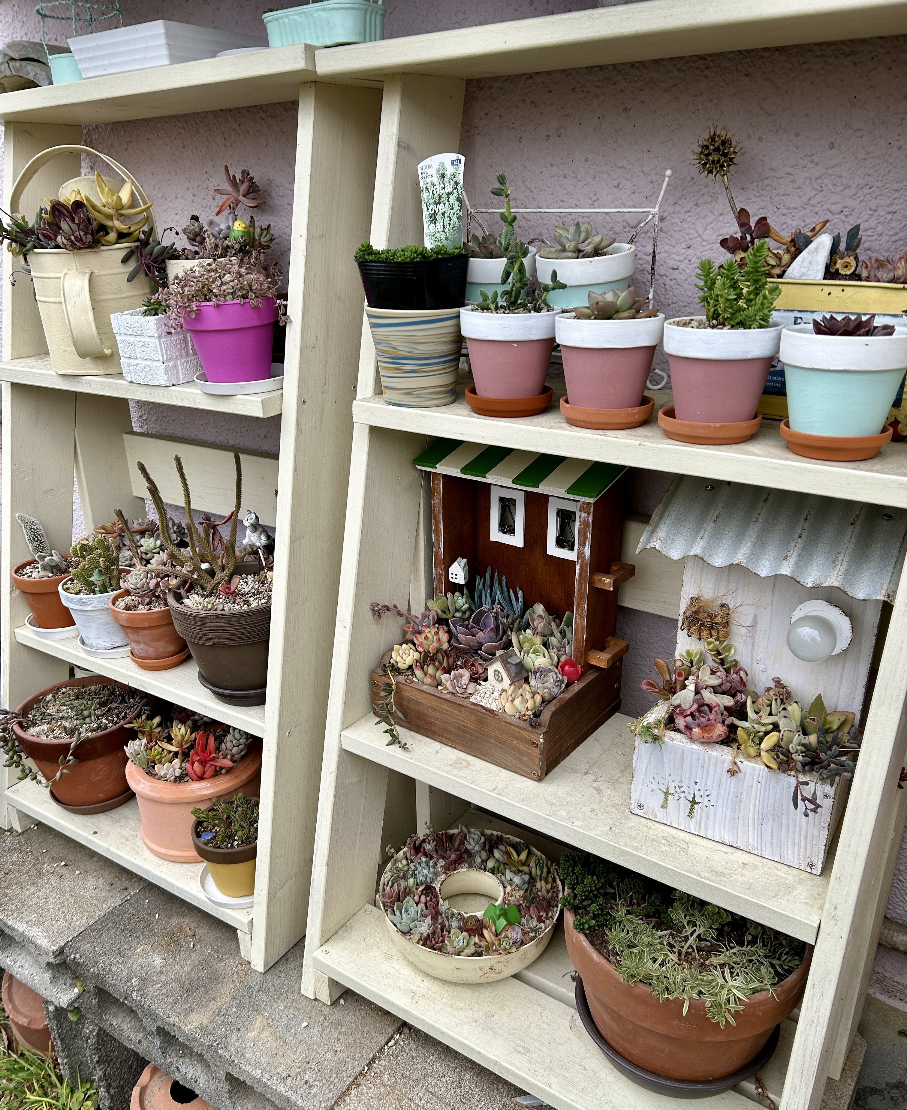 トップ > グリーン > 多肉棚を整理しました Toko 2024/03/20 20:55 多肉棚を整理しました 午前中天気が良かったのに、急に暗くなって雨が降って来た〜と思ったら強い風🌪️ 不安定なお天気でしたね。 雨が少し上がって、2度目の晴れの時に、多肉の鉢を整理しました。 蕾も発見😆咲くのが楽しみ。 この次は屋内組を整理します😅 いいね 共有する 共有する X LINE リンクをコピー コメントする 5 件の返信 (新着順) ミュートしたユーザーの投稿です。 投稿を表示 べるん 2024/03/21 09:28 可愛い多肉さんが一杯で、癒されますね~💞 いいね 返信する ミュートしたユーザーの投稿です。 投稿を表示 みんと 2024/03/21 07:54 お宝コーナーですね😆 春はいろんなお花が動き出すからワクワクしますね🎵 いいね 返信する ミュートしたユーザーの投稿です。 投稿を表示 Toko 2024/03/21 08:37 みんと 普段は特に何も手をつけないので、時々向きを変えたり、前と奥の鉢を入れ替えたり。 そこで蕾発見💡 時々見てあげなくては!ですね。 いいね 返信する ミュートしたユーザーの投稿です。 投稿を表示 nohashi 2024/03/21 03:59 とっても素敵です。 うちも整理しなくてはいけないんですが、ここのところ風が強くて…😅 いいね 返信する ミュートしたユーザーの投稿です。 投稿を表示 Toko 2024/03/21 08:35 nohashi 本当に強い風でした…夜までガタガタ。 飛ばされないように工夫しないと少し心配なのですが😟 いいね 返信する ミュートしたユーザーの投稿です。 投稿を表示 みずたま☆ 2024/03/21 02:50 この棚 はWSの作品ですよね❓️ 2個並んでスッキリオシャレ😄 カワイイ💓寄せ植えがたくさんでステキです😆👌✨ いいね 返信する ミュートしたユーザーの投稿です。 投稿を表示 Toko 2024/03/21 08:35 みずたま☆ この場所にちょうどぴったりで、二つ作りました。お気に入りの棚です😊 いいね 返信する ミュートしたユーザーの投稿です。 投稿を表示 きゃな 2024/03/21 01:01 多肉さんのいろんな発見がありそうですね✨ ホワイトの棚いいですね✨ いいね 返信する ミュートしたユーザーの投稿です。 投稿を表示 Toko 2024/03/21 08:34 きゃな あれから、鉢の色を塗っているので、棚が白いのは助かります。 どんなものをおいても一応馴染んでくれる?😆 いいね 返信する