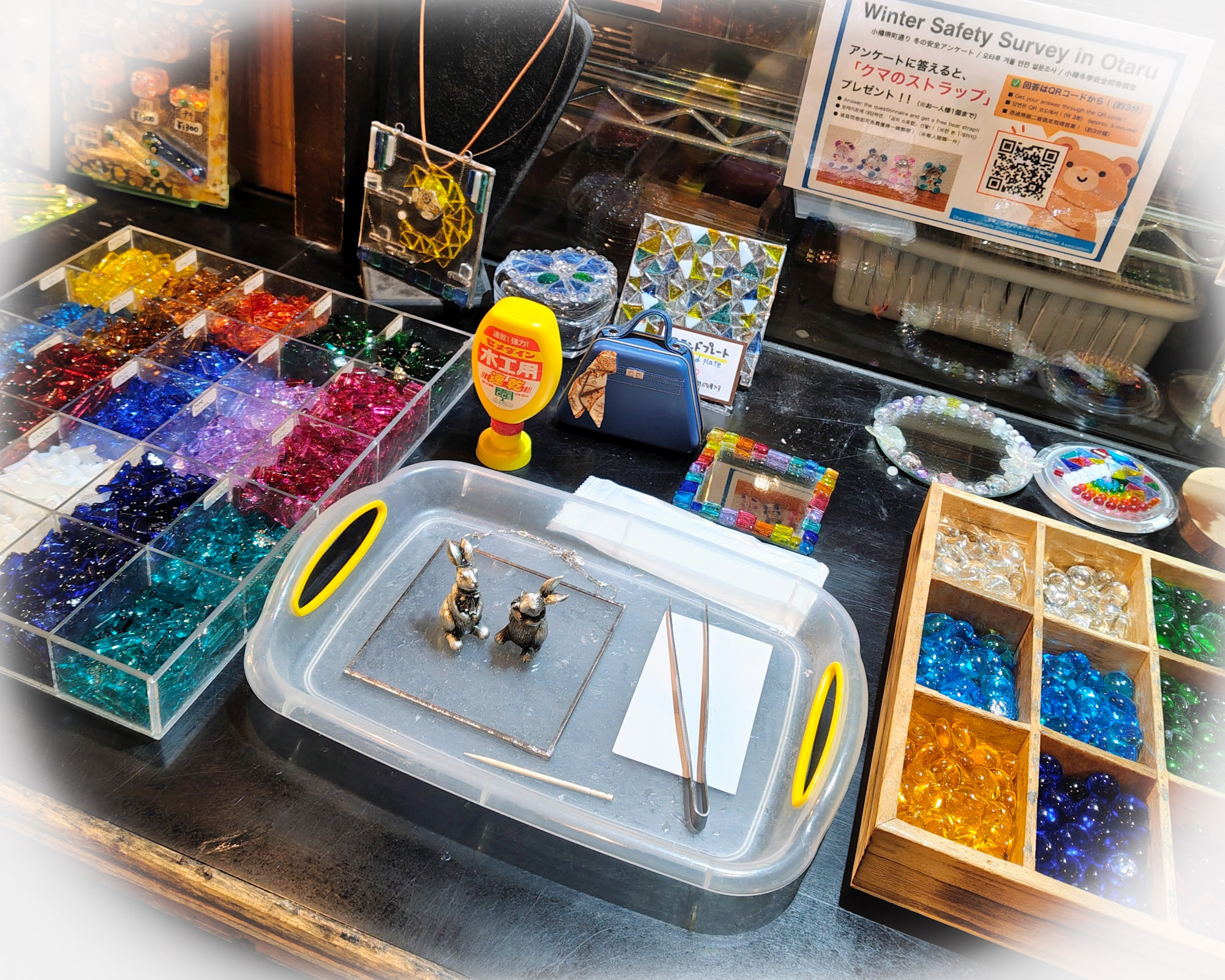 10cm角のガラスのプレートに、ガラスのパーツを貼り付けて、オリジナルのプレートを作る体験です☺️