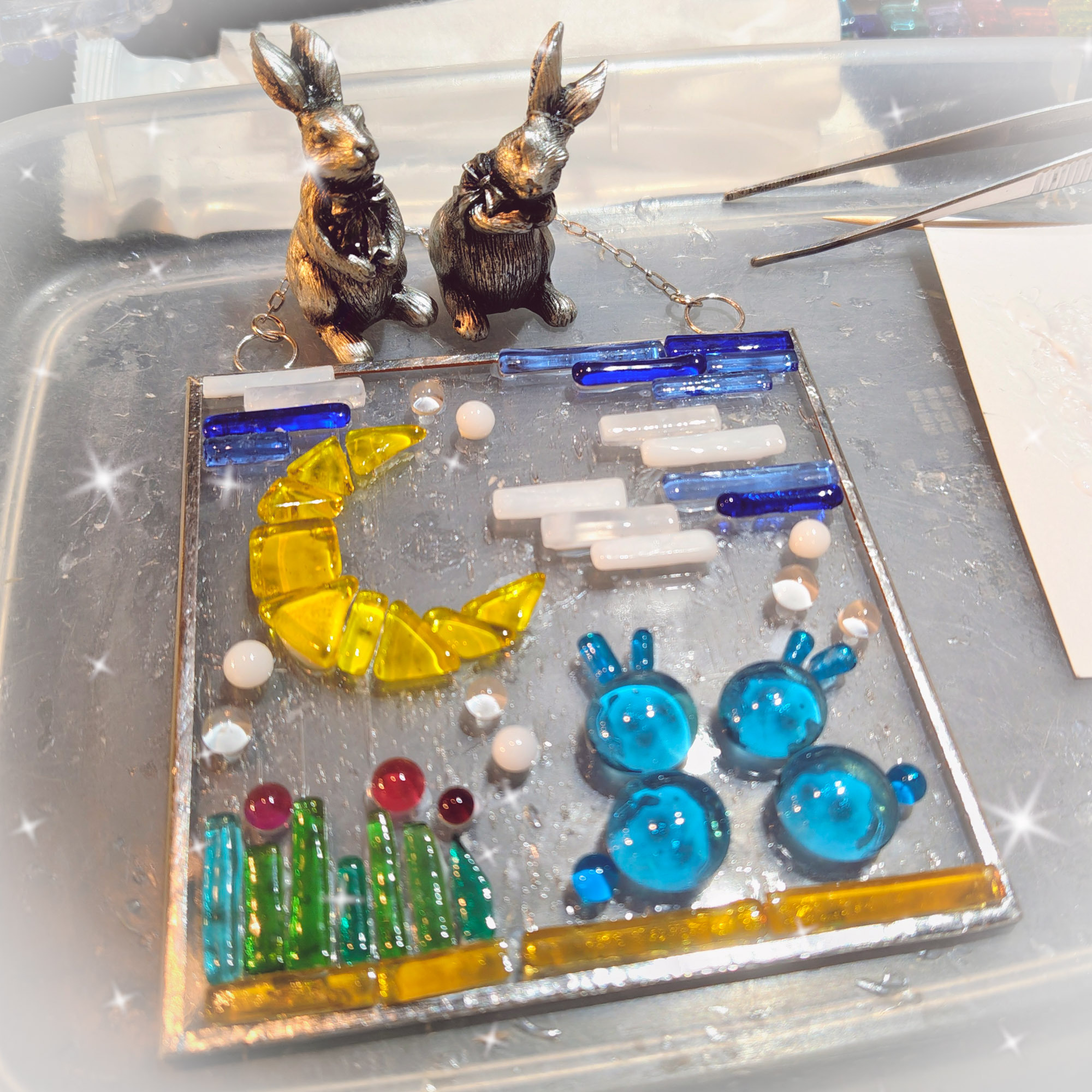 ガラスを上手く組み合わせてお月様とうさぎさんが可愛いですね🥰